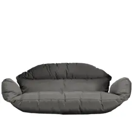 Relax är en generös hänggunga med plats för två personer, utformad för att erbjuda avslappning i en stilren form. Gungan har en stabil stomme i svartlackerat stål och är omsorgsfullt flätad med konstrotting som ger ett mjukt och inbjudande uttryck. De medföljande dynorna i grått Olefintyg tillför komfort och en varm ton som harmonierar fint med den grafiska konstruktionen.