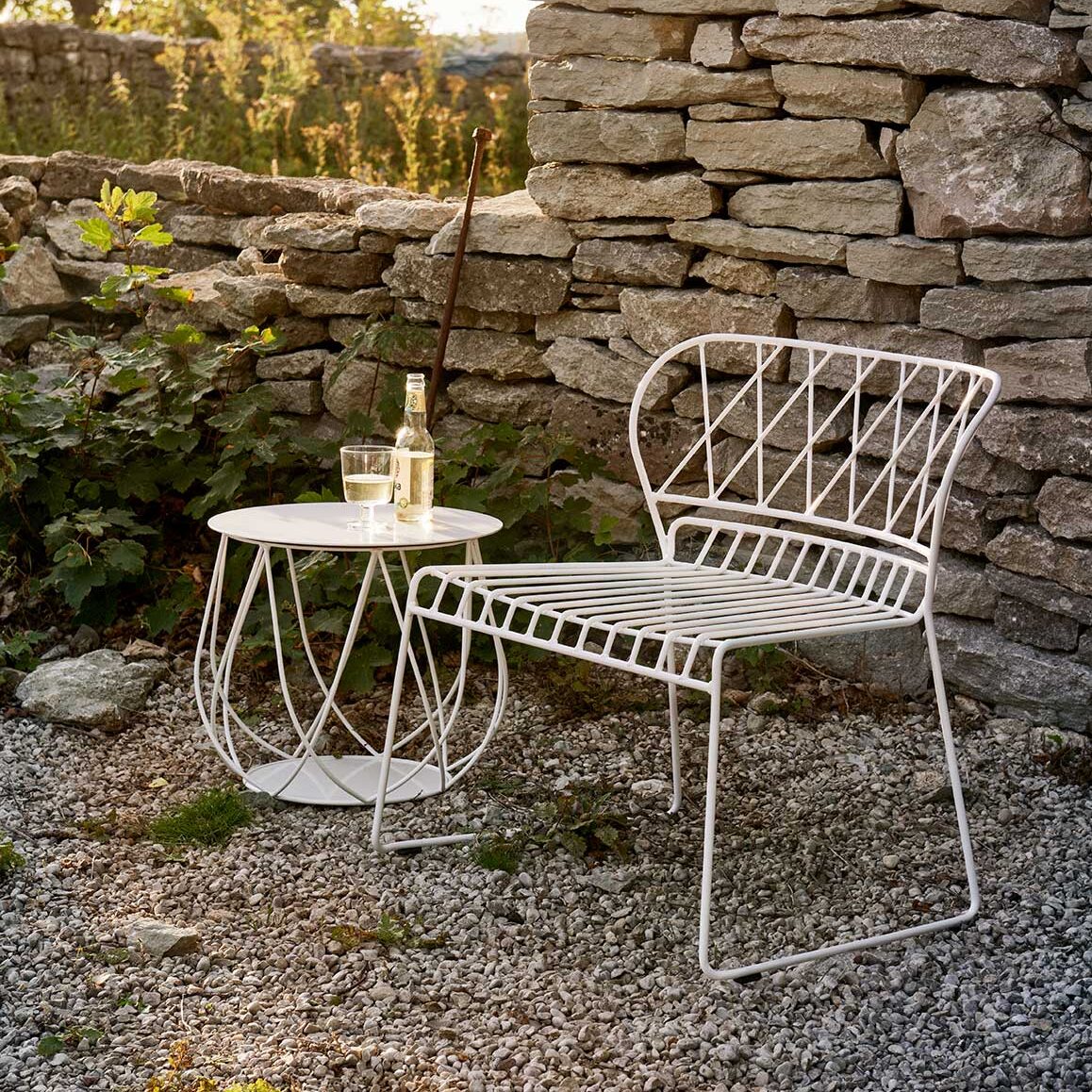 Resö är en loungestol tillverkad av metalltråd. Visas här i färgen vit.