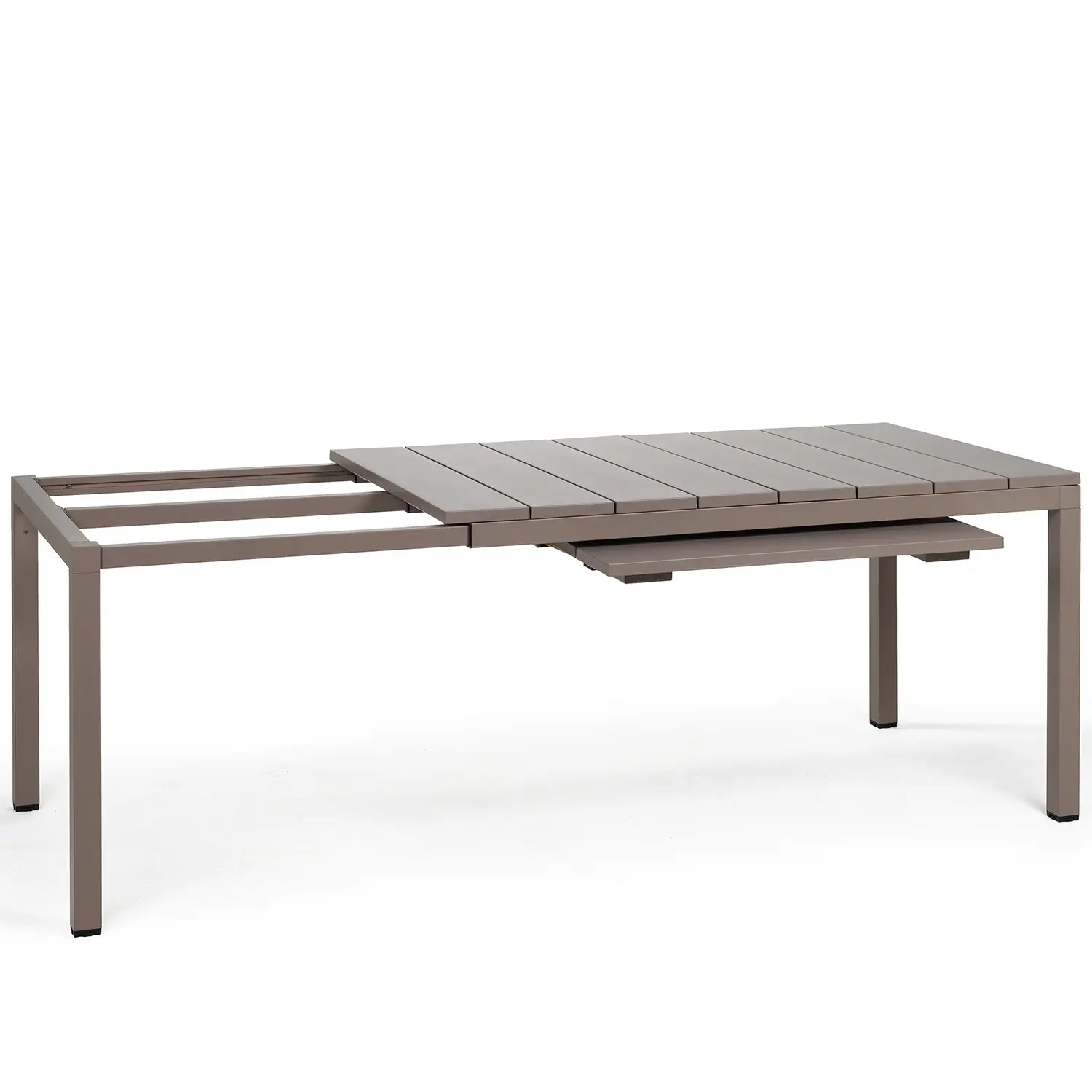 Rio har ett förlängningssystem som gör att strukturen kan glida och alltid behåller benen vid bordets ändar. På så sätt kan alla besvär med blockerande ben undvikas. Bordet har designats med ett perfekt snabbfixeringssystem för dess förlängningar.