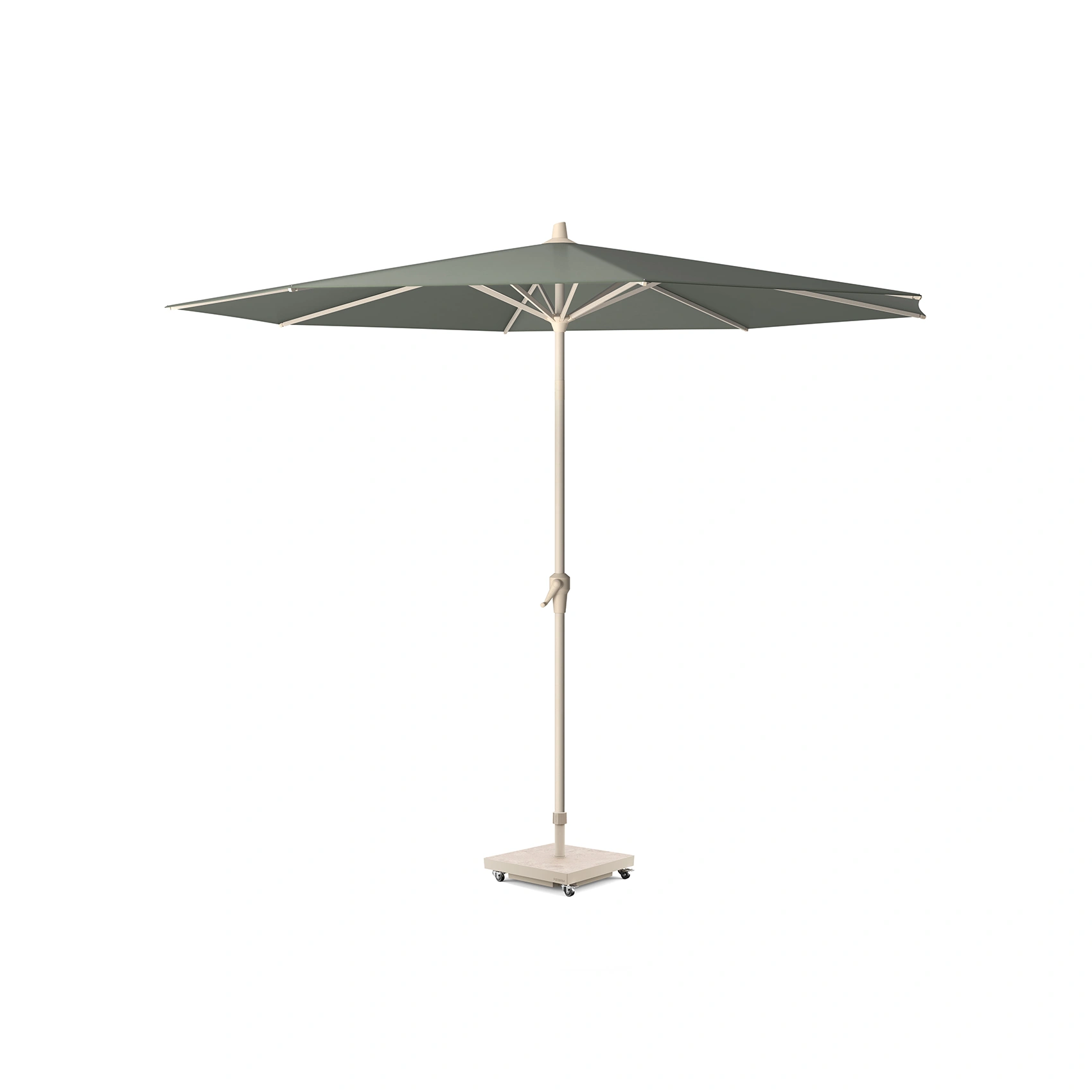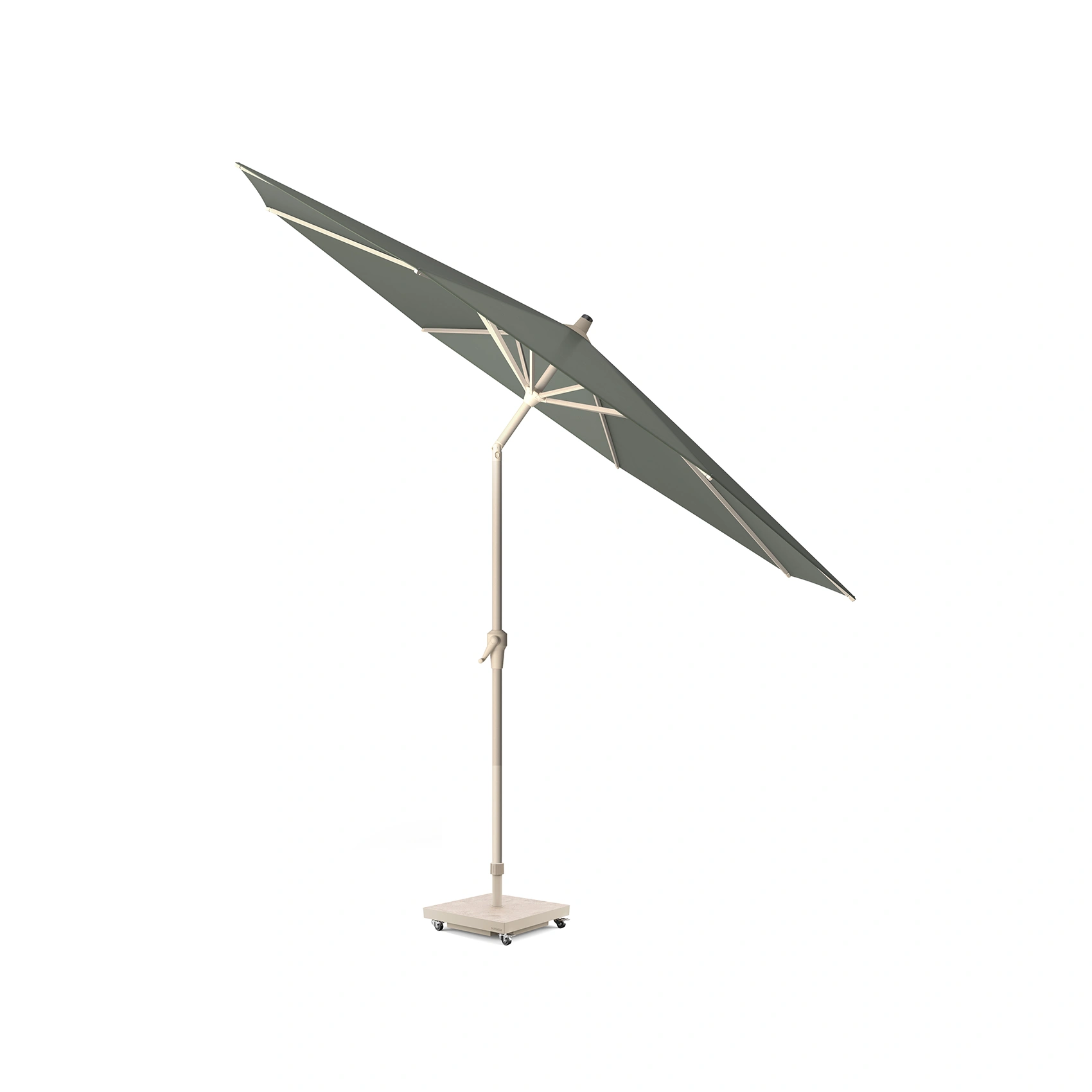 Parasollet levereras utan parasollfot. Vi rekommenderar en parasollfot på minst 40 kg. Vi rekommenderar en parasollfot Platinum Sun & Shade. Många av dessa är försedda med hjul och har en design som matchar parasollet. Du hittar matchande parasollfötter längre ner på sidan.