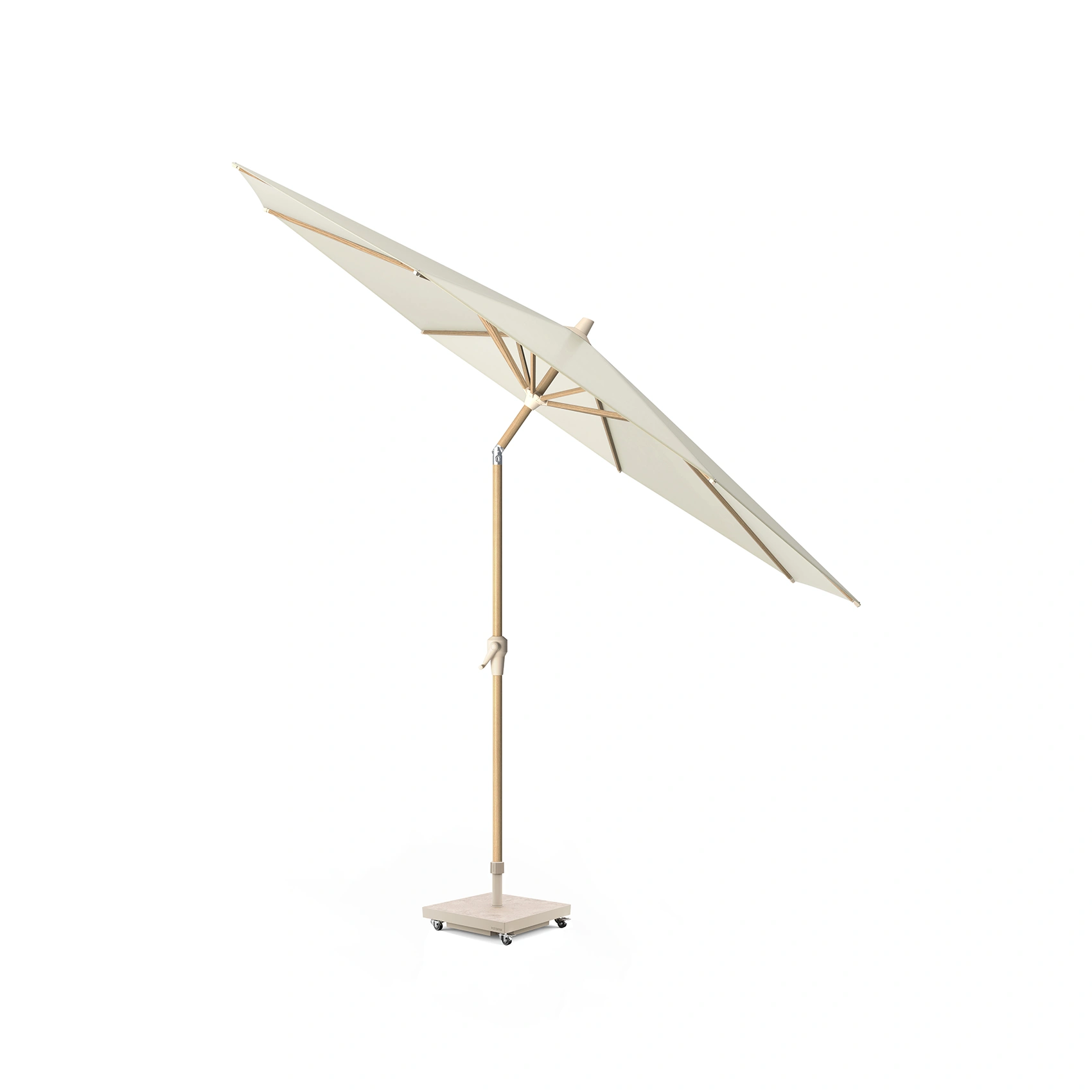 Riva-parasollets moderna design gör att du enkelt kan skapa skugga på en sommardag. Oavsett om det är på balkongen, uteplatsen eller i trädgården är Riva den perfekta lösningen och finns i många storlekar, tygkvaliteter och färger, och visas här i ecru med aluminiumstativ med teaklook.