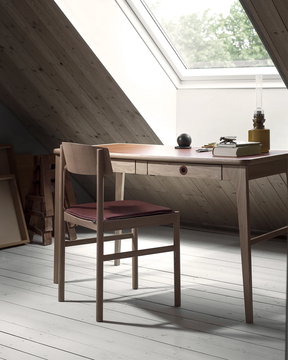 ROD – Design av Pierre Sindre som formgivit en makalöst bekväm och lätt shakerstil-stol. Enkla detaljer i benen och ryggen. Infästningen mellan ryggplatta och bakbenen sker med träplugg.