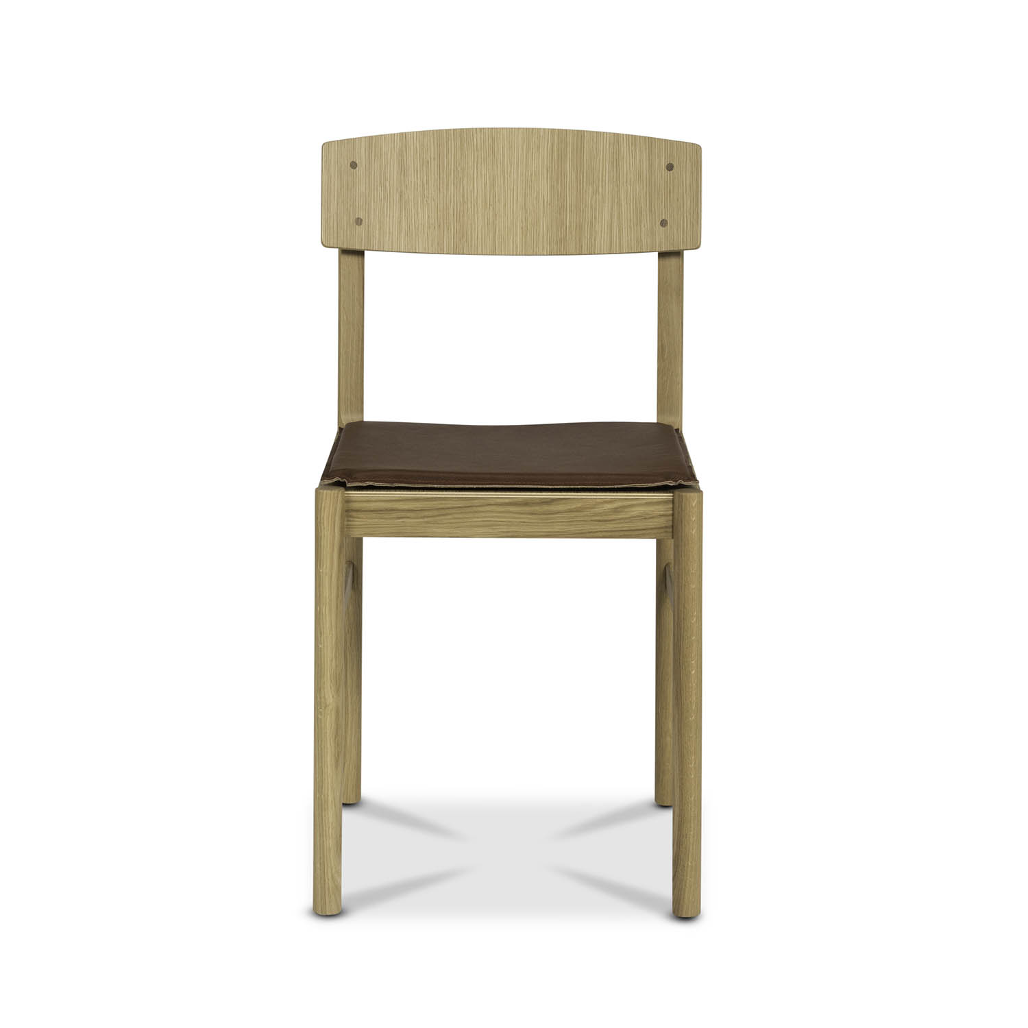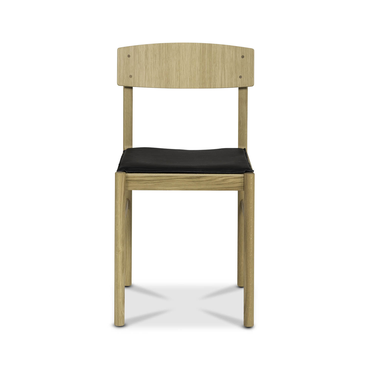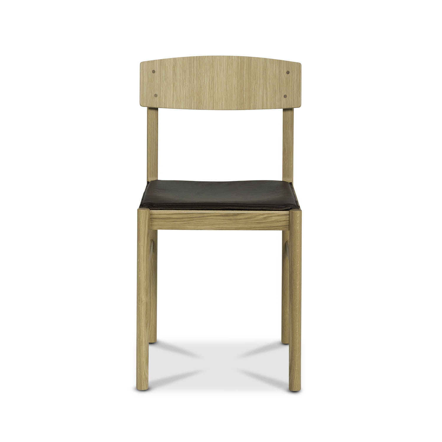 Sittdynor i läder finns som tillval i Mocca, Svart & Cognac. Dynorna sys med råkant som gör de sådär härligt icke perfekta. Ligger löst ovanpå stolssitsen med anti-glid under.