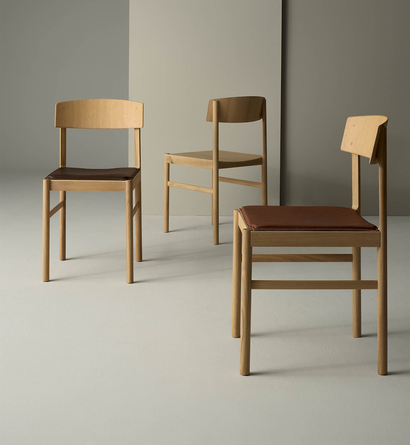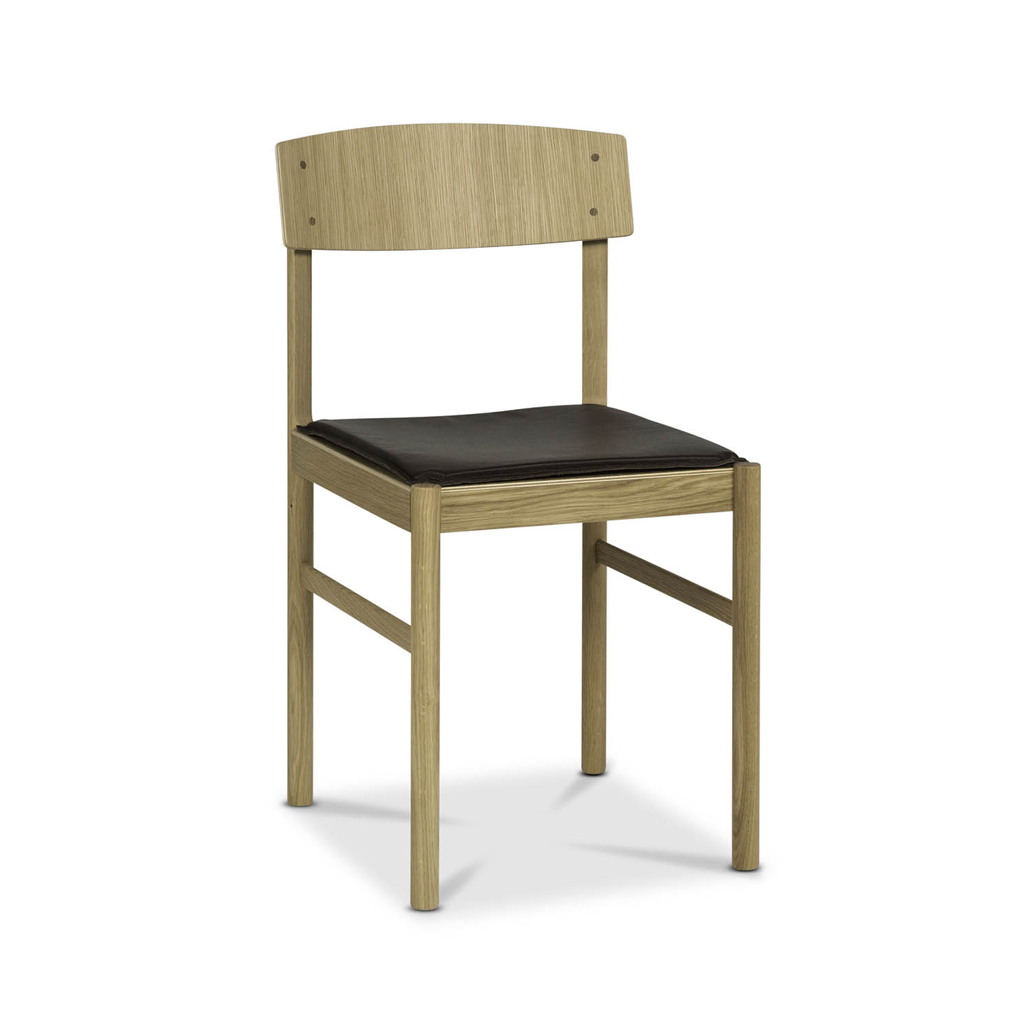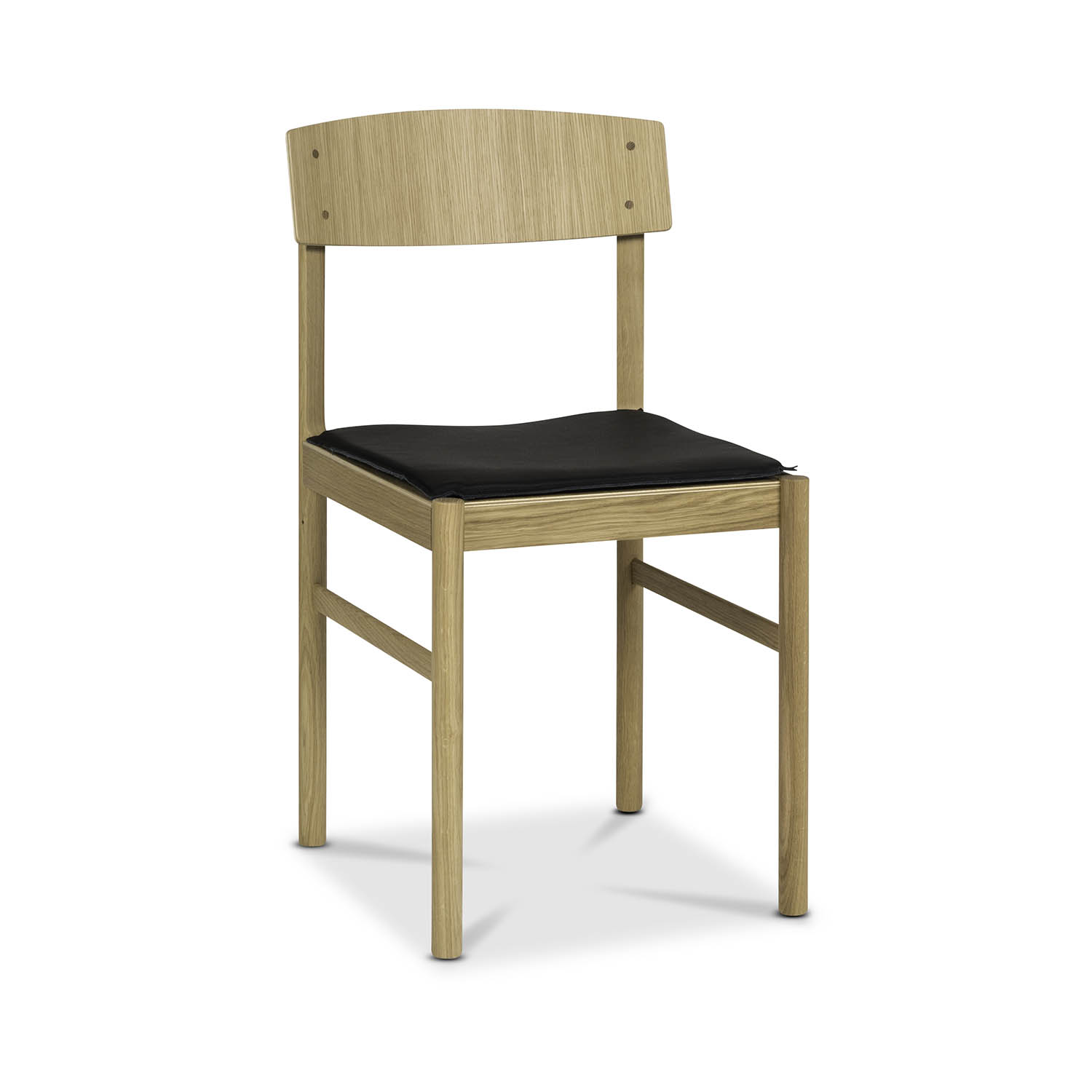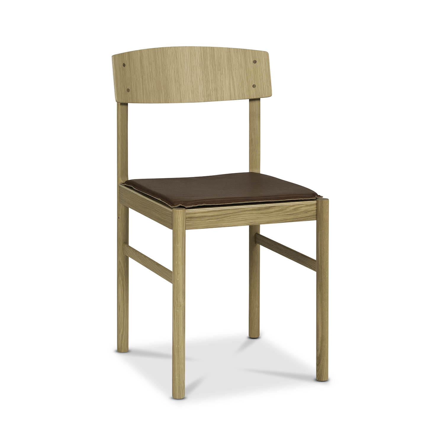 Sittdynor i läder finns som tillval i Mocca, Svart & Cognac. Dynorna sys med råkant som gör de sådär härligt icke perfekta. Ligger löst ovanpå stolssitsen med anti-glid under.