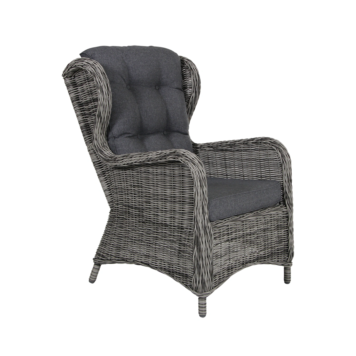 I Rosita-serien finns en skön fåtölj, en positionsfåtölj med hög rygg och tillhörande fotpall, 3-sits soffa och två bord, 50×50 cm och 150×80 cm. Rosita finns i grå- och naturfärgad konstrotting som påminner om äkta rotting.