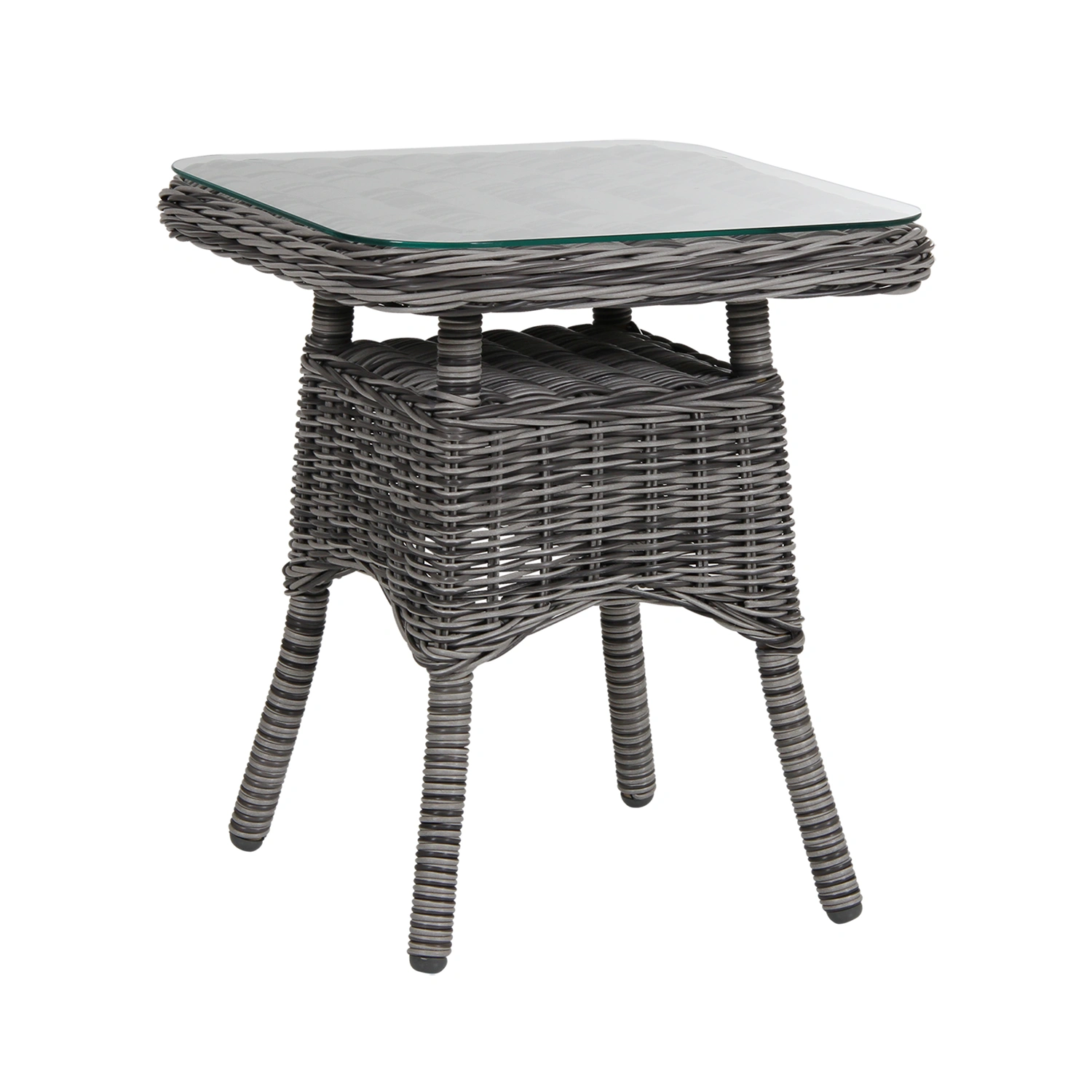Sidobordet Rosita i konstrotting med bordsskiva i tempererat glas.