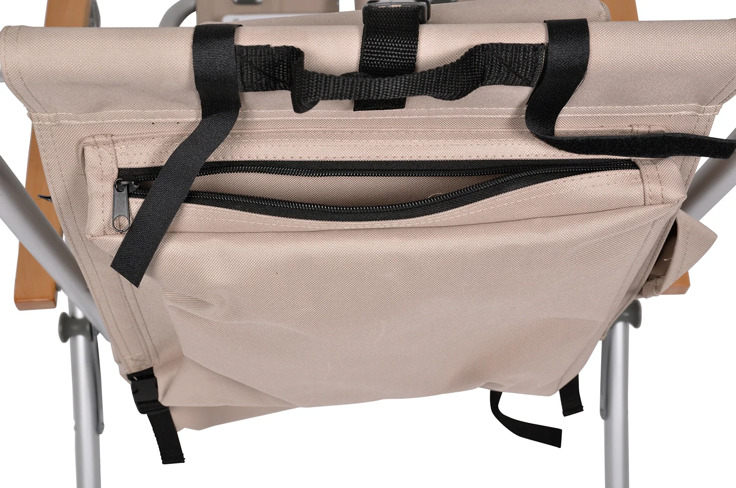 Stolen fungerar som ryggsäck när den är hopfälld och innehåller nackkudde, fotstöd, mugghållare, data-/tidningsbord och två stycken förvaringsfack.