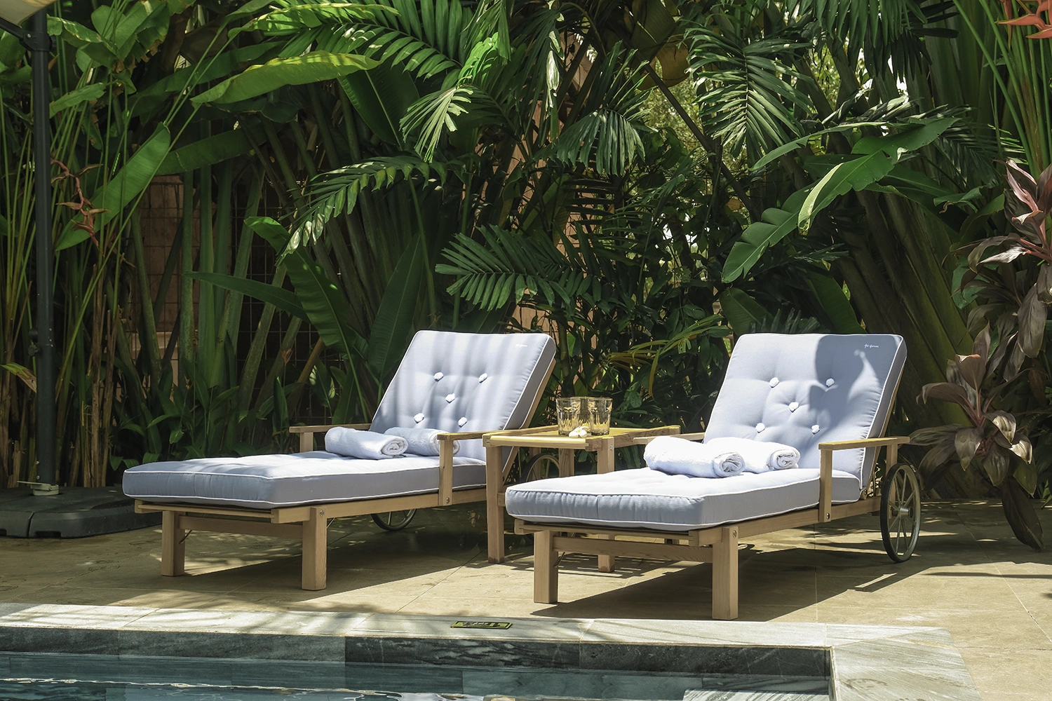 Tvätta möbeln med mild tvållösning och mjuk borste för att ta bort smuts och nedfall. Om du vill behålla den varma rödbruna tonen, olja in möbeln med en högkvalitativ träolja 1–2 gånger per år. Låter du möbeln stå obehandlad får den med tiden en vacker silvergrå patina. Använd möbelskydd vid längre perioder utan användning och vinterförvara torrt och svalt.