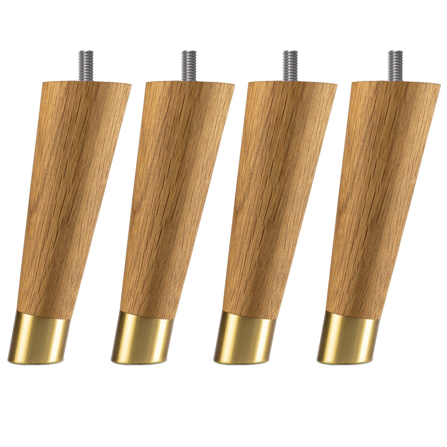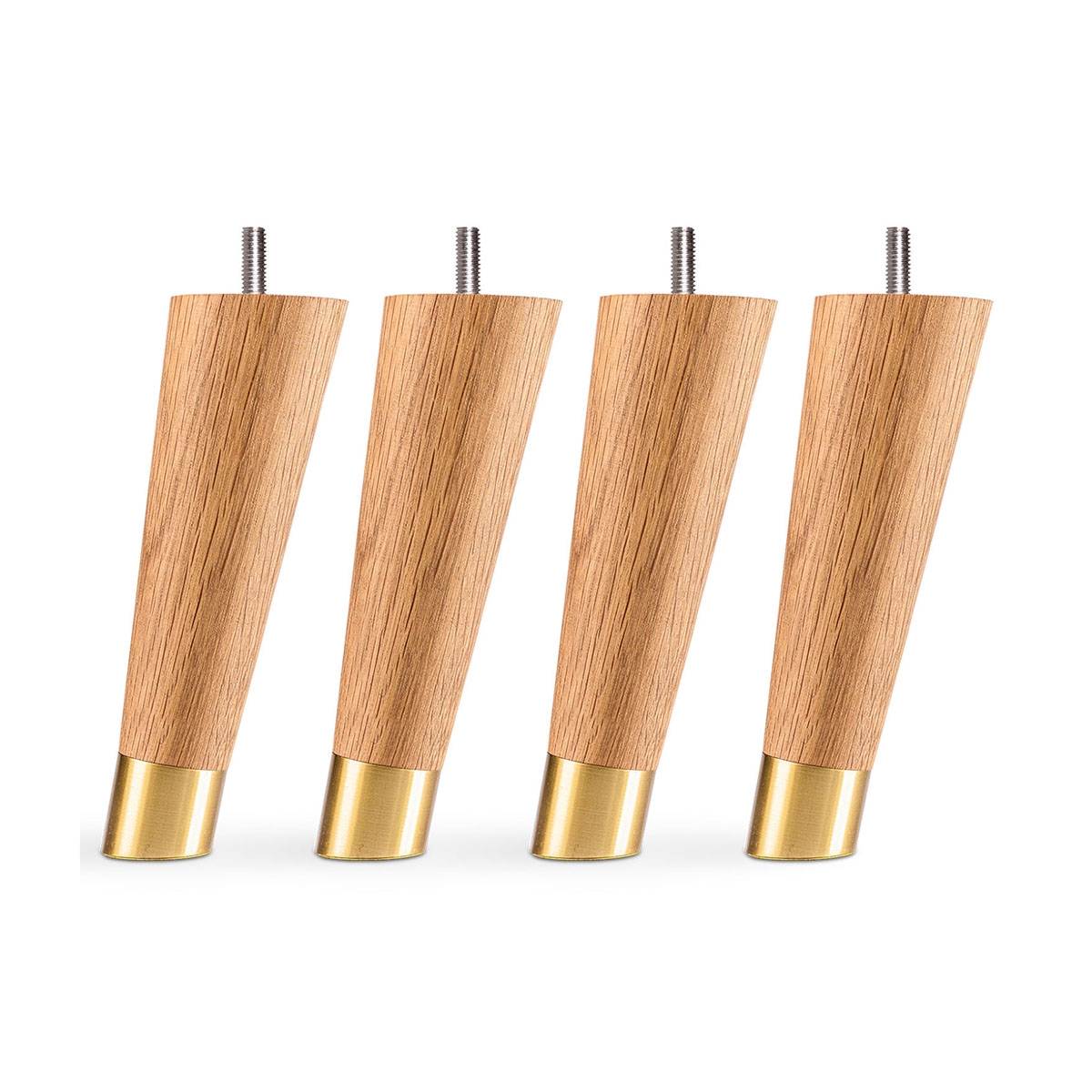 Runda lutande sängben 20 cm, i oljad ek med mässingsfot.