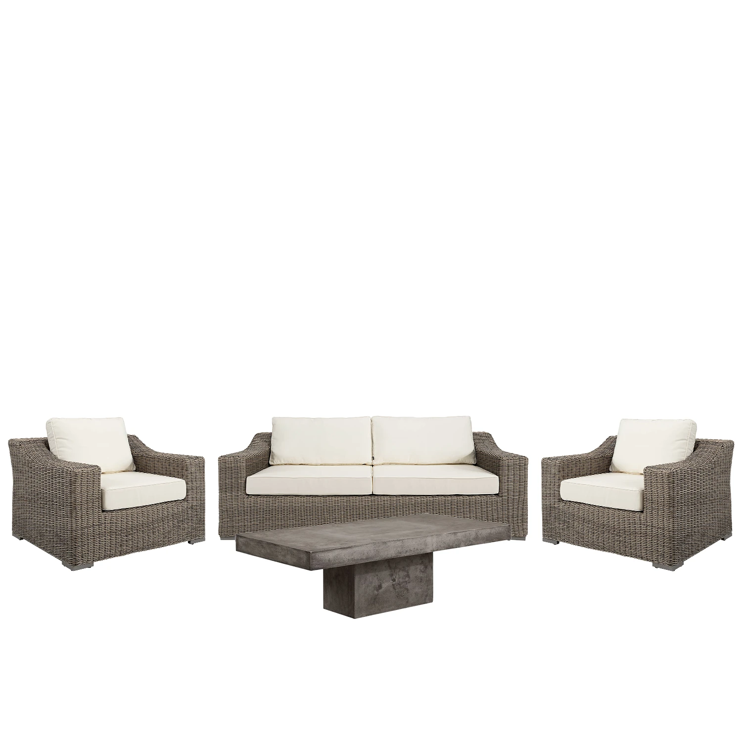 San Diego är en rejält tilltagen soffgrupp från Artwood i grå konstrotting. Gruppen har en stomme av aluminium. Vita dynor med avtagbar klädsel i 100 % polyester ingår, kemtvätt rekommenderas. Dynstoppning av en polyeterkärna med svept fiber och riven polyeter. Det finns möjlighet att beställa andra dynöverdrag i valfritt tyg från Artwoods tygkollektion, alternativt eget inskickat tyg.