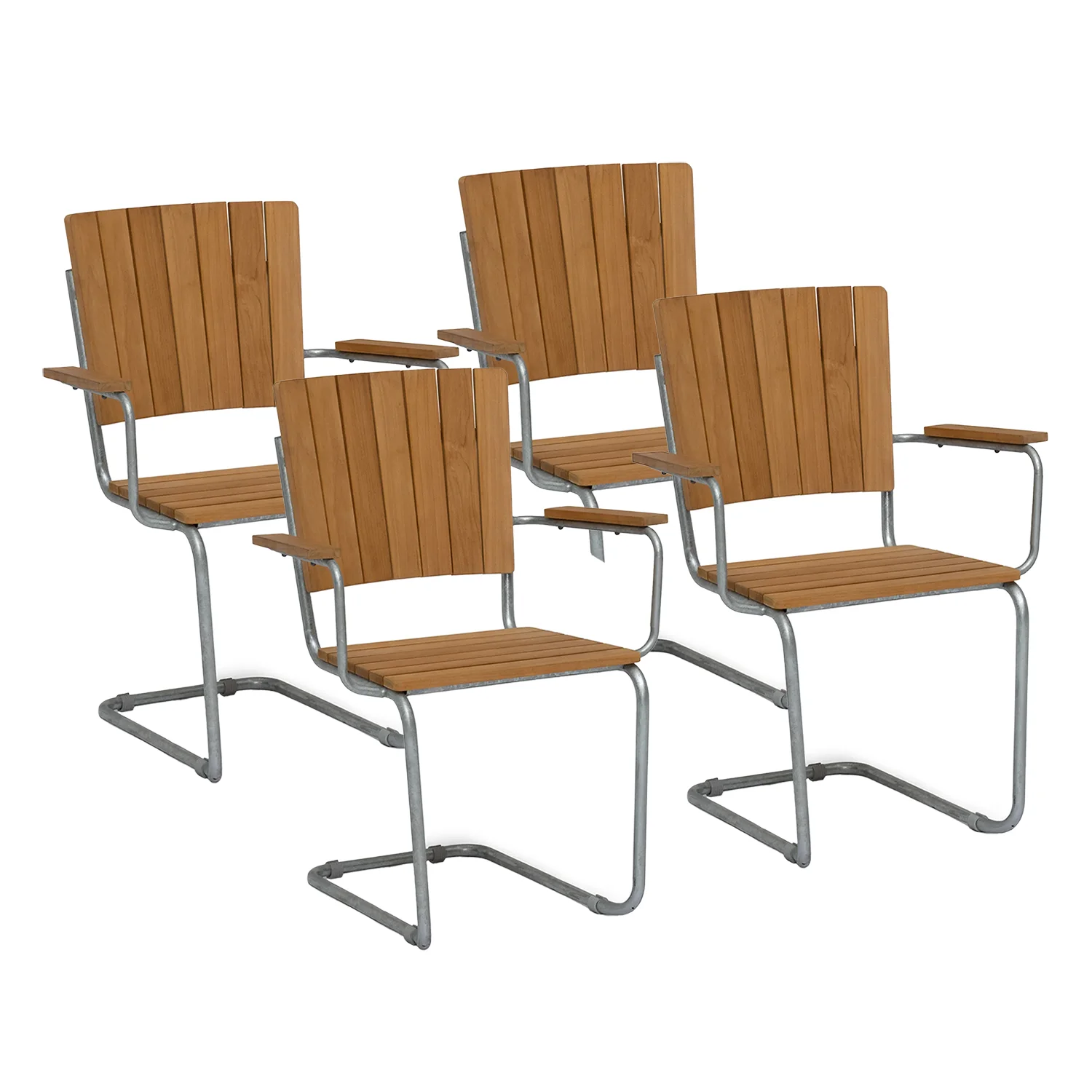 Tillverkad i obehandlad FSC-certifierad teak av högsta kvalitet med stomme i varmgalvaniserat stål. Teak är ett hållbart materialval som blir vackrare för varje år som går. Teaken åldras med tiden och ger en vacker silvergrå patina. Säljs i 4-pack.