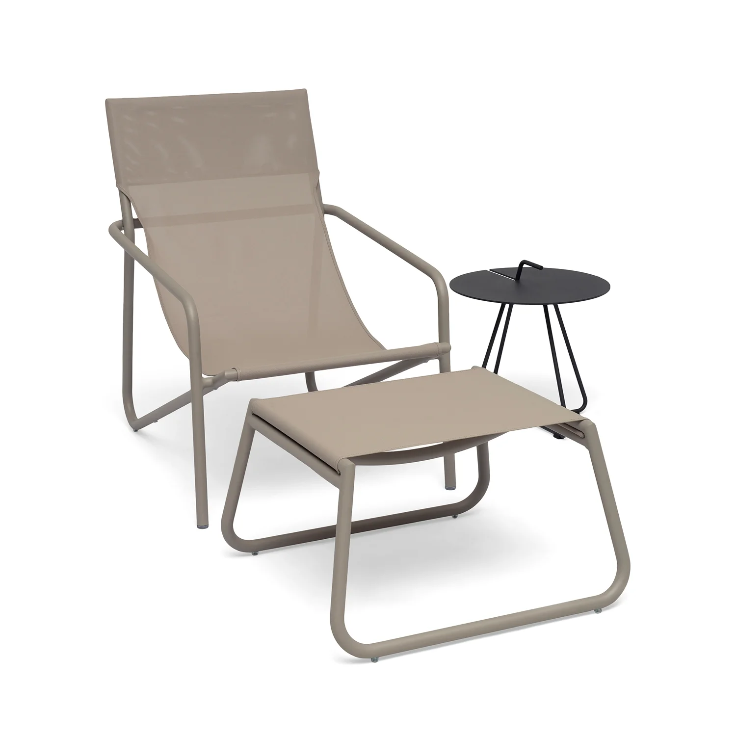 En trendig, modern och graciös solstol perfekt för lata sommardagar. Med sin goda komfort och generösa omfång är detta en solstol du njuter länge i. Tillverkad i aluminium med vävt textilene säte. Stolen är stapelbar för smidig förvaring.
