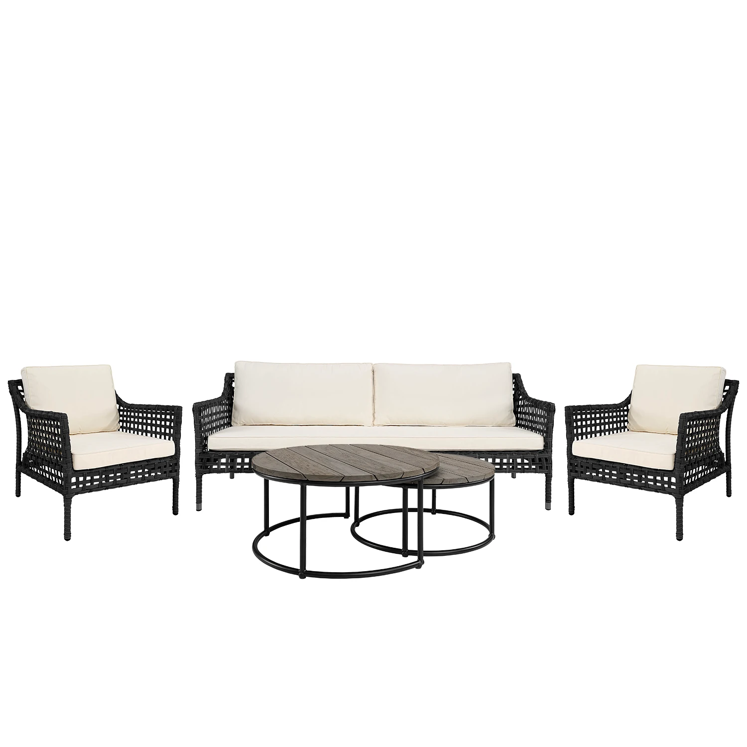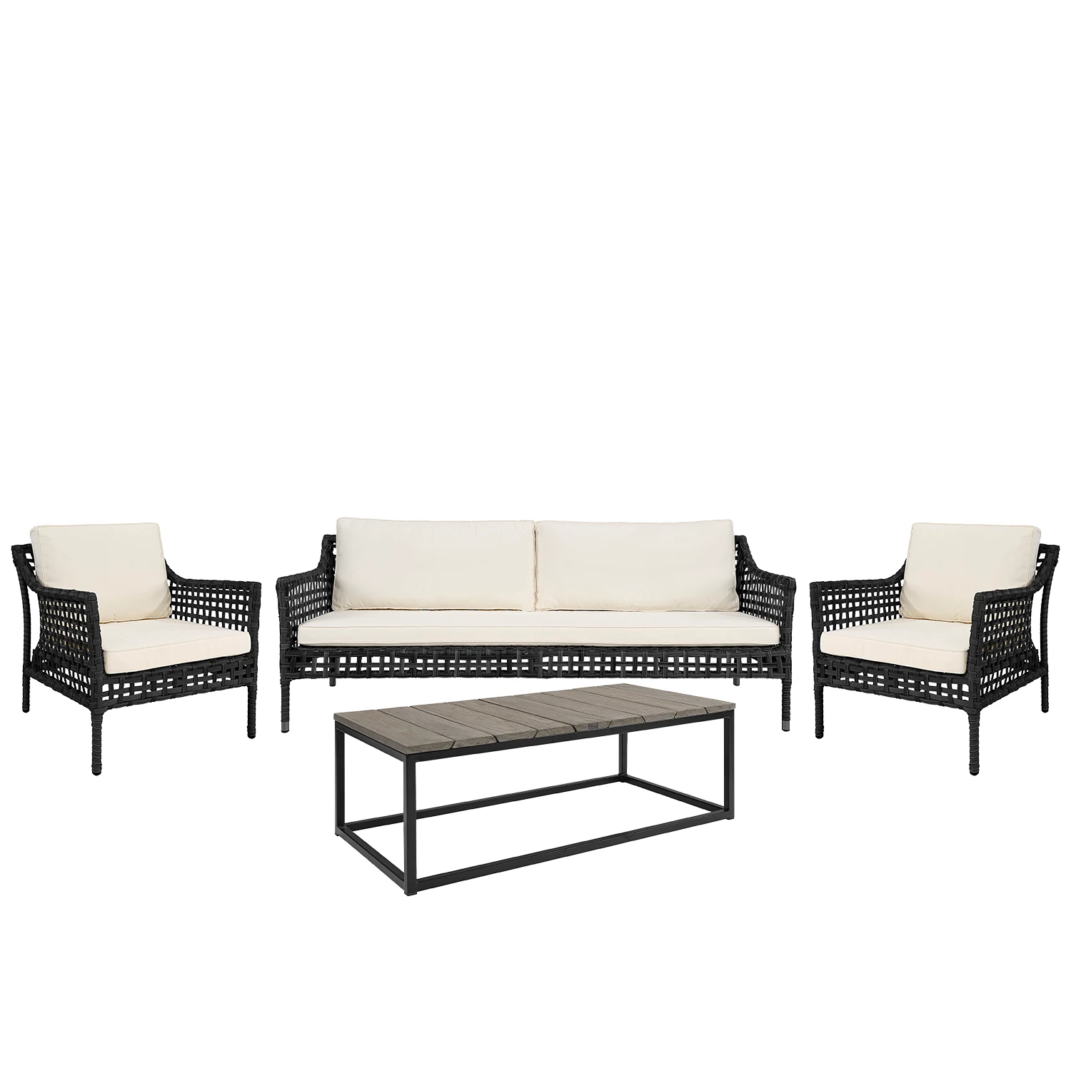 Soffgrupp från Artwood med Santa monica soffa och fåtöljer i konstrotting och soffbordet Anson i teak/stål.