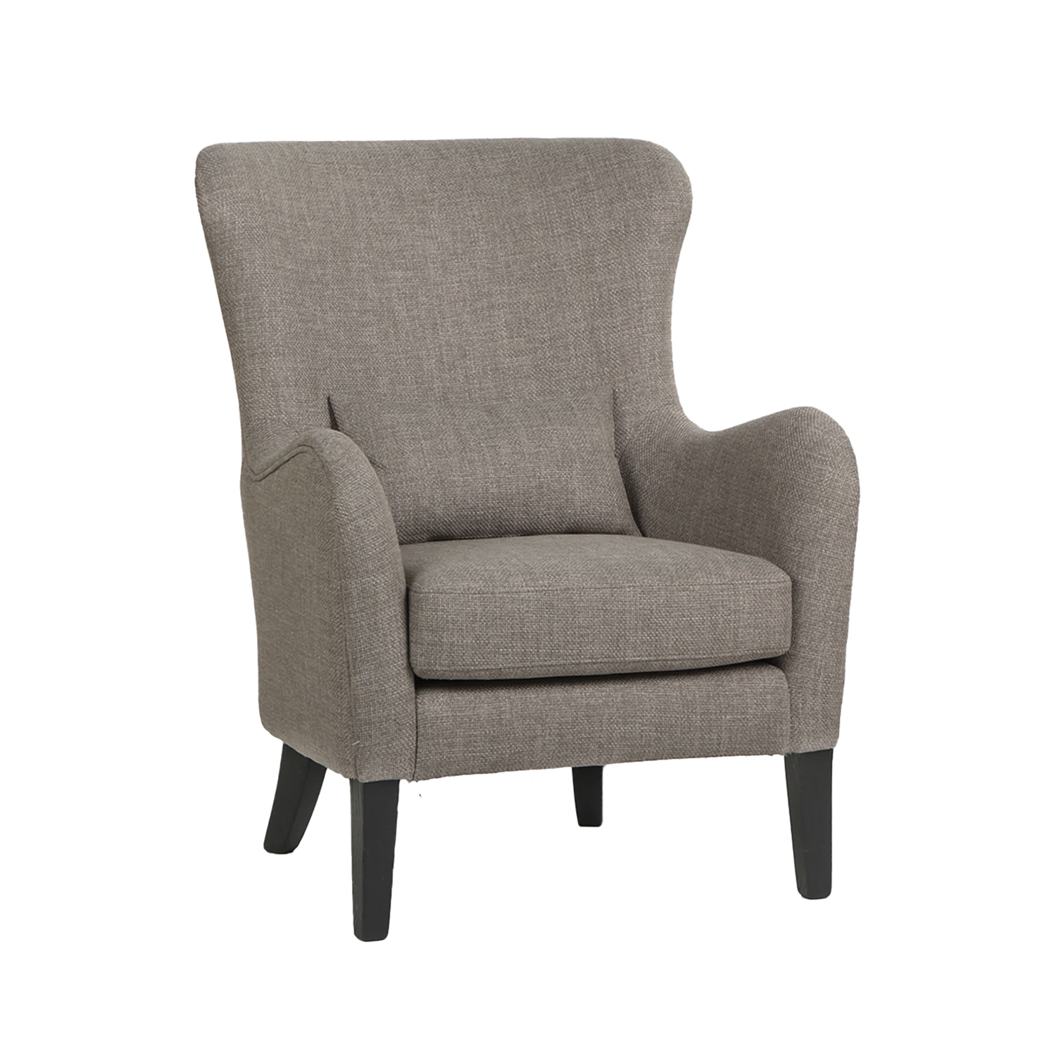 Den mjukt formade ryggdelen, rundade armstöden och den avtagbara sittplymån ger både stil och stöd. Den neutrala, vävda textilen i varm gråton gör fåtöljen lätt att matcha med olika inredningsstilar – från modern till traditionell.