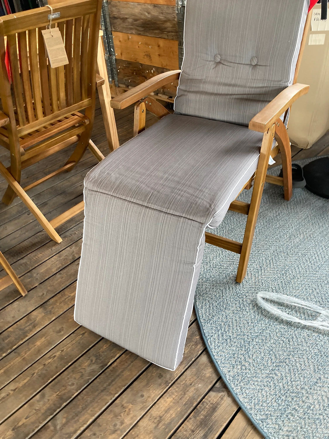 Däckstolsdynan är boxsydd och passar däckstolar/solstolar med fotdel. Fotdelen är något smalare och tunnare än sittdelen. Se skiss för fullständiga mått.
