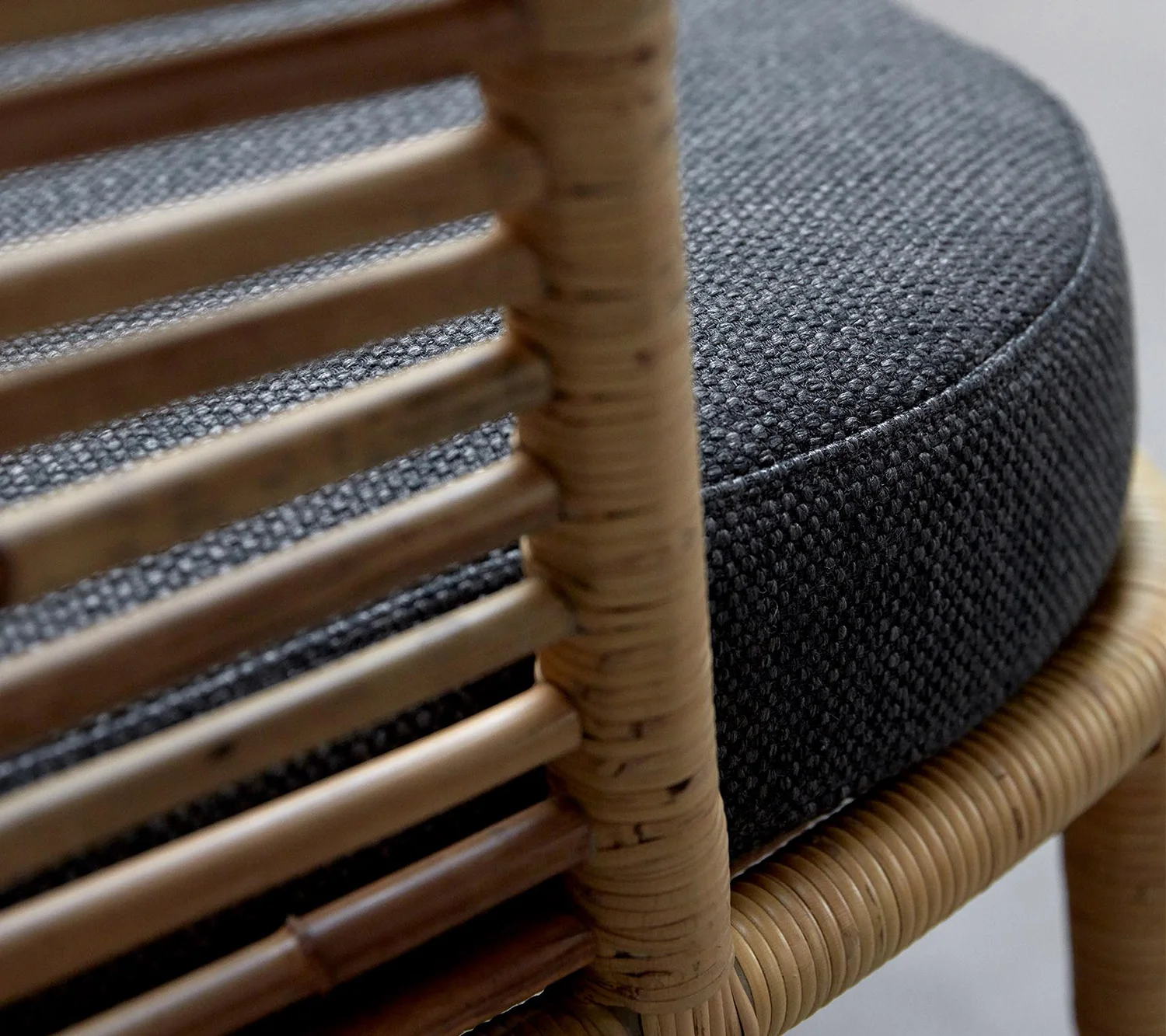 Soffan Sense är handgjord av naturlig rotting och finns i naturfärgad och svart. Tyget är allergivänligt, tåligt och enkelt att rengöra och underhålla.