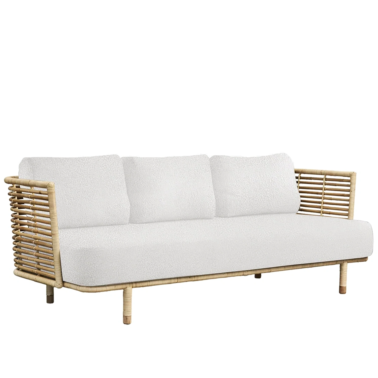 Sense är en elegant och skulpturell soffa i en modern retro design som passar in i ett modernt hem. Den skandinaviska och genomskinliga designen gör Sense 3-sits soffan vacker att titta på från alla håll. Soffan är designad av Foersom & Hiort-Lorenzen MDD. Sense är handgjord av naturlig rotting och finns i naturlig, svart eller vit rotting. Tyget är allergivänligt, slitstarkt och enkelt att hålla rent och underhålla.
