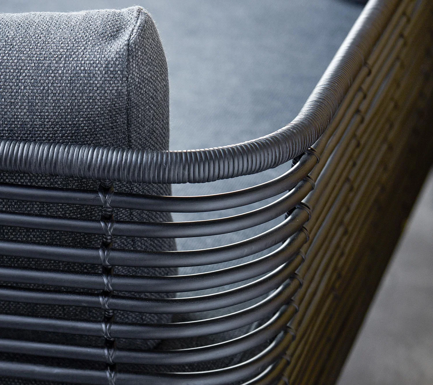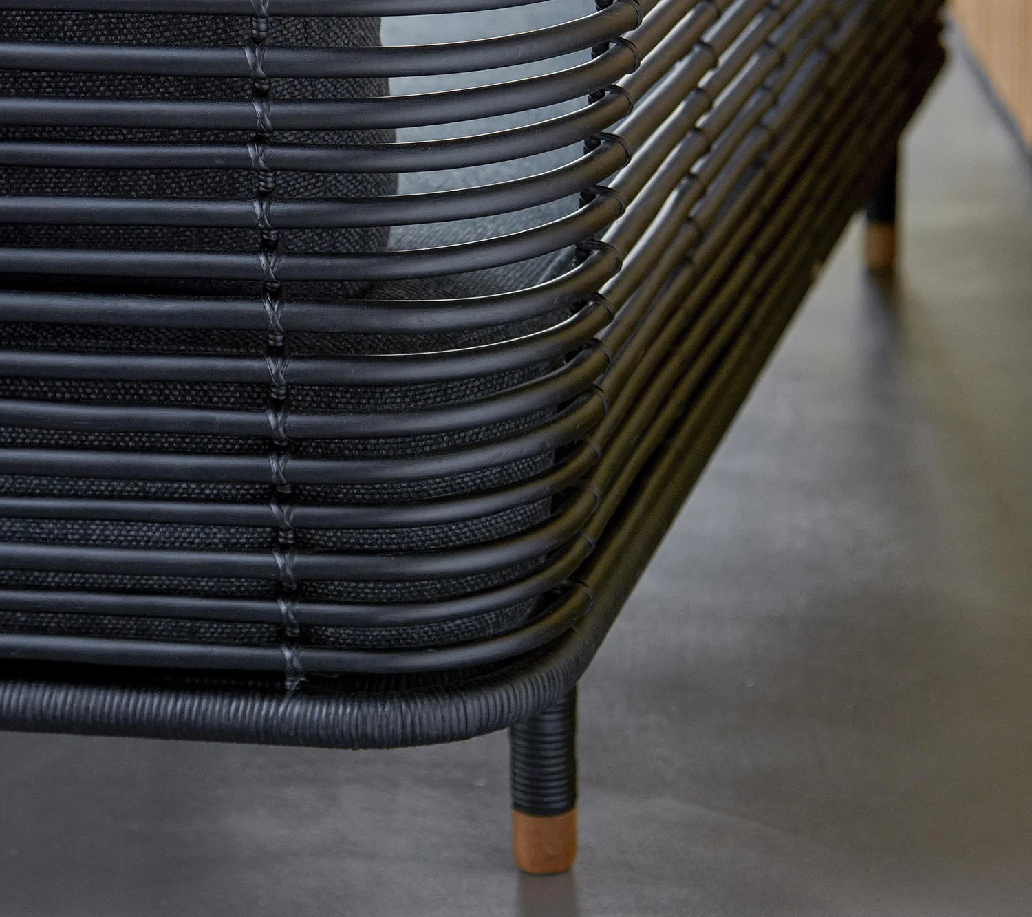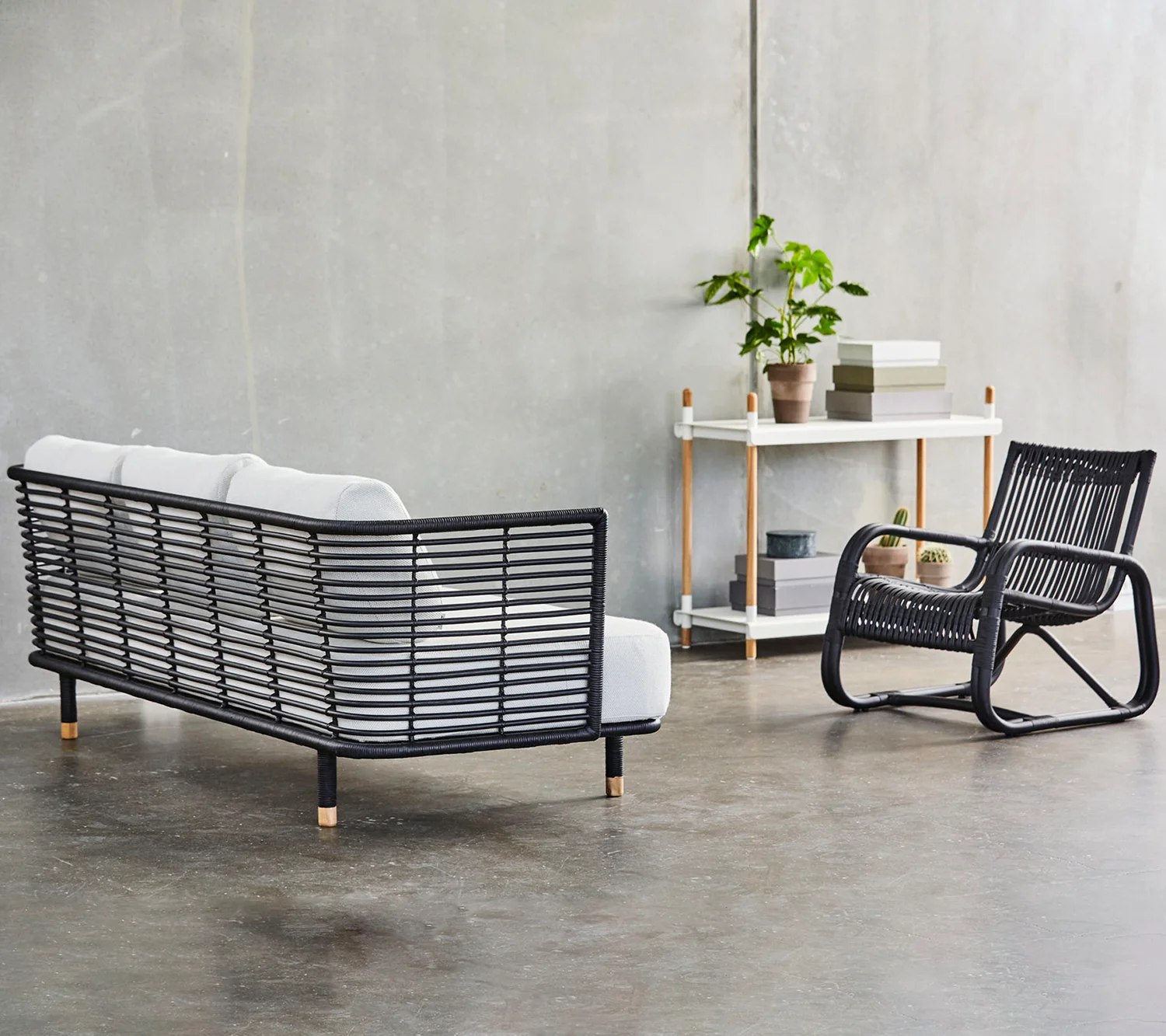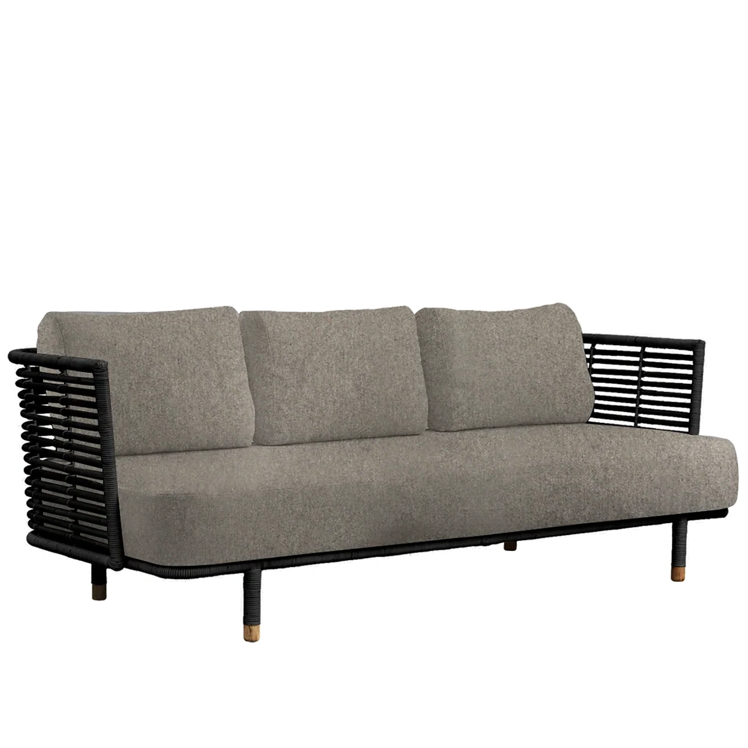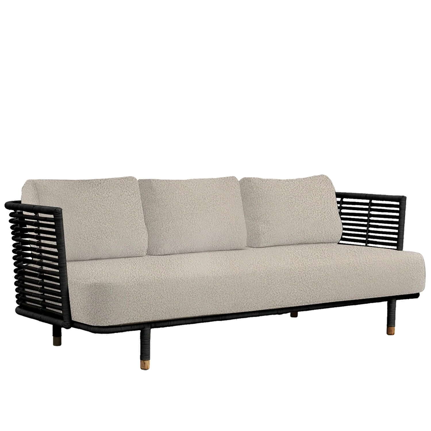 Soffan Sense är handgjord av naturlig rotting och finns i naturfärgad och svart. Tyget är allergivänligt, tåligt och enkelt att rengöra och underhålla.