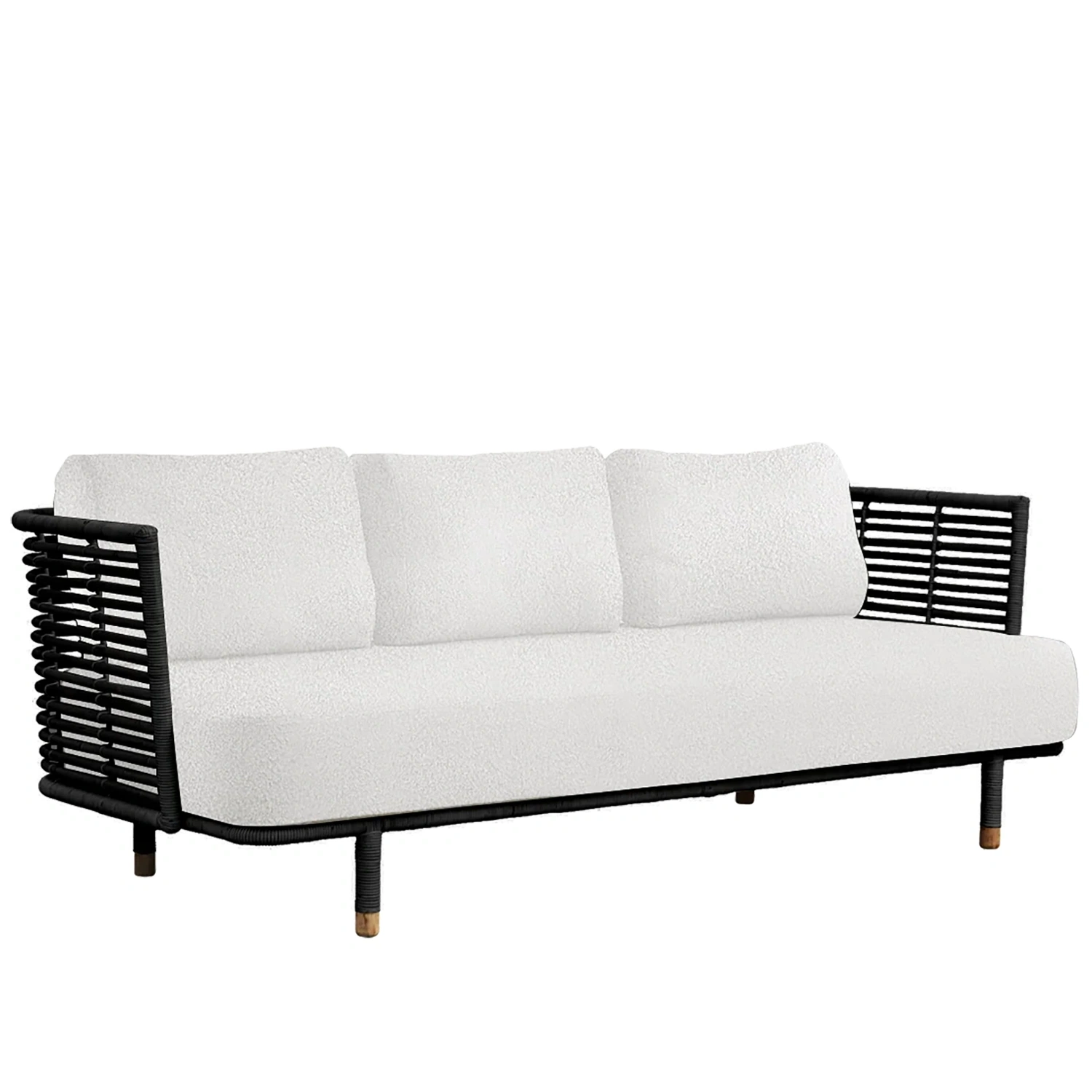 Sense är en elegant och skulpturell soffa i en modern retro design som passar in i ett modernt hem. Den skandinaviska och genomskinliga designen gör Sense 3-sits soffan vacker att titta på från alla håll. Soffan är designad av Foersom & Hiort-Lorenzen MDD. Sense är handgjord av naturlig rotting och finns i naturlig, svart eller vit rotting. Tyget är allergivänligt, slitstarkt och enkelt att hålla rent och underhålla. Rattan möbler kan endast användas inomhus.