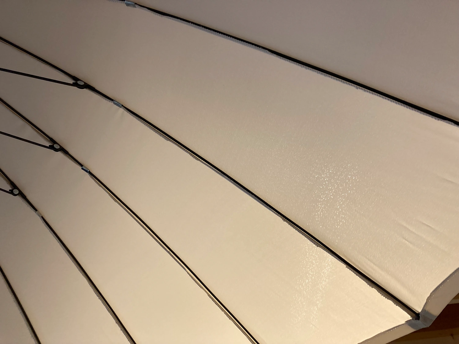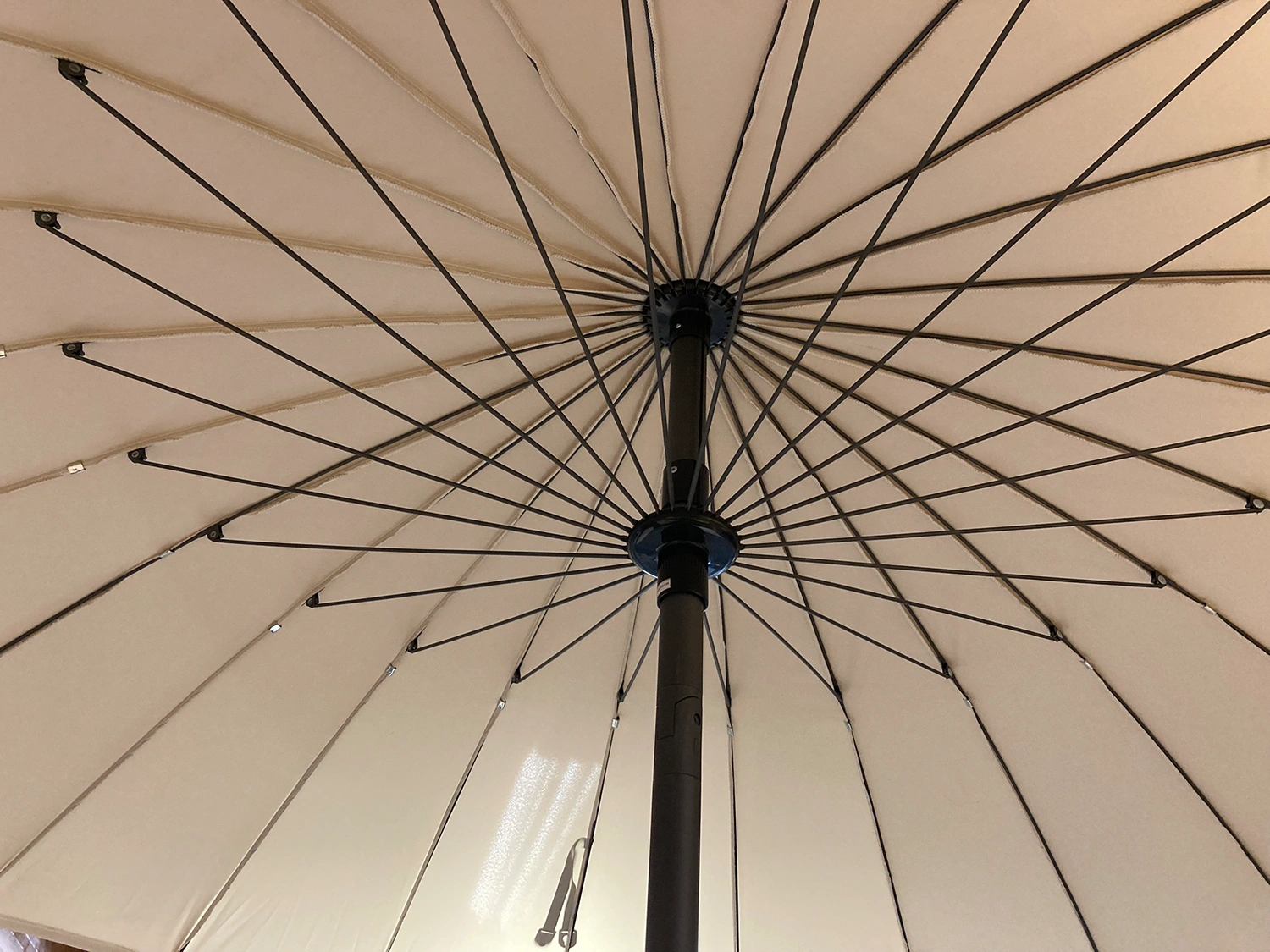 Parasollet har en gedigen vev och stång som går att luta, vilket gör det lätt att nå svalkande skugga. När det vinklas blir de många och vackra stålribborna synliga – form och funktion i harmoni. Detta parasoll adderar både stil och funktion till din uteplats.