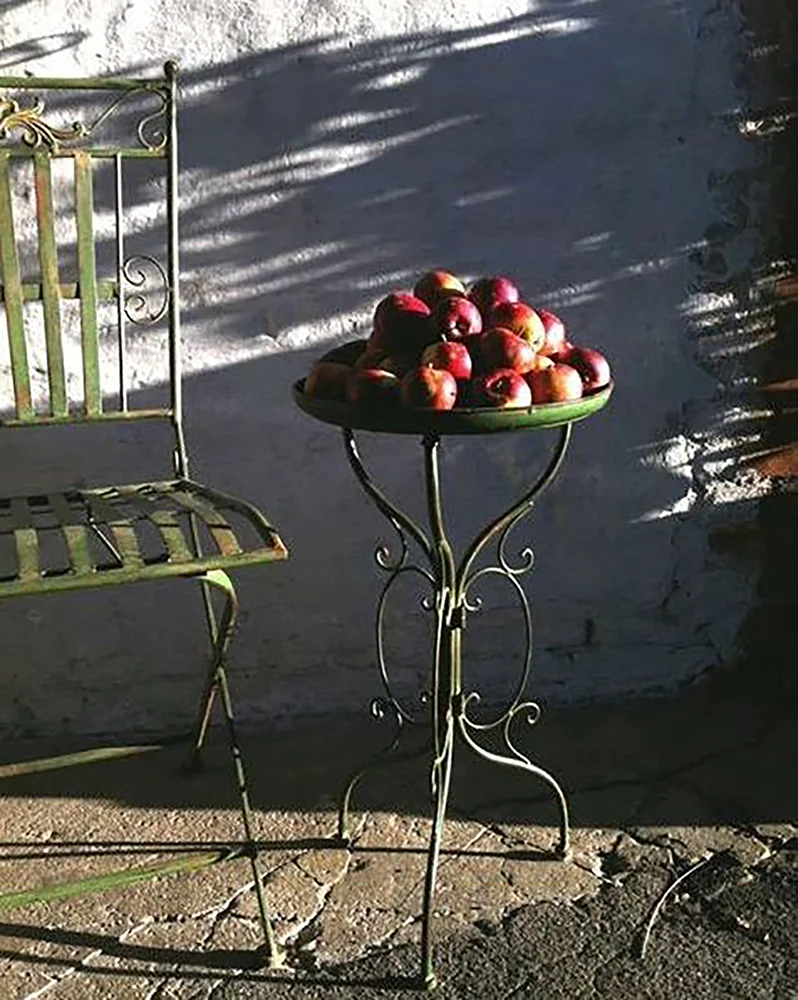 Bordet är inte rostskyddsbehandlat och kommer således rosta under bar himmel. För att behålla den ursprungliga finishen utomhus behöver möbeln lackas.