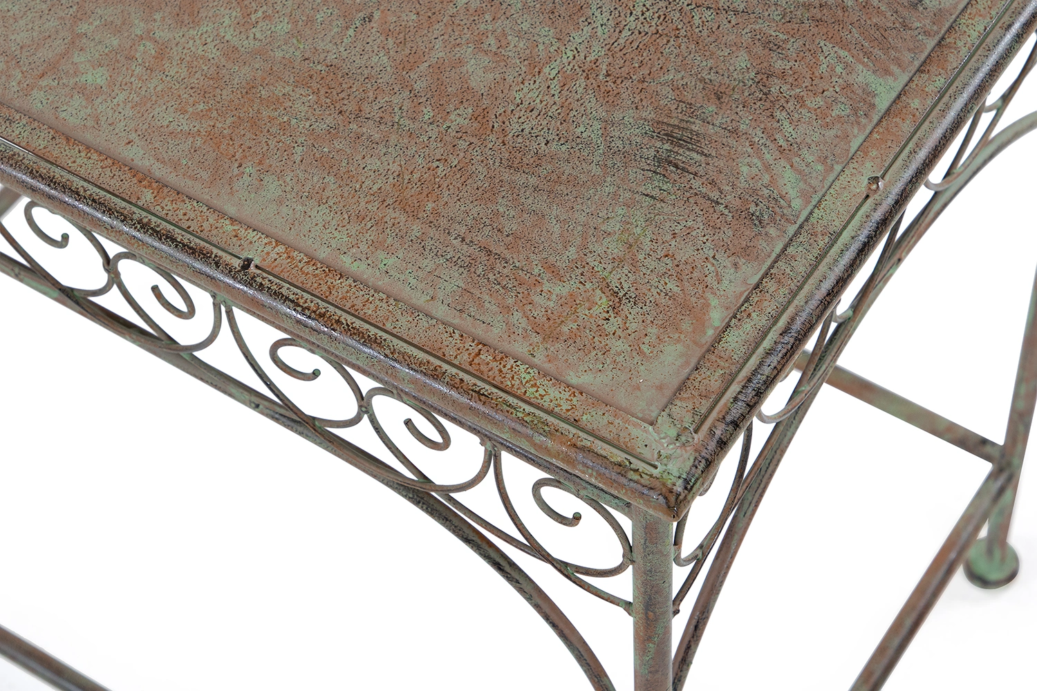 Bordet är inte rostskyddsbehandlat och kommer således rosta under bar himmel. För att behålla den ursprungliga finishen utomhus behöver möbeln lackas.