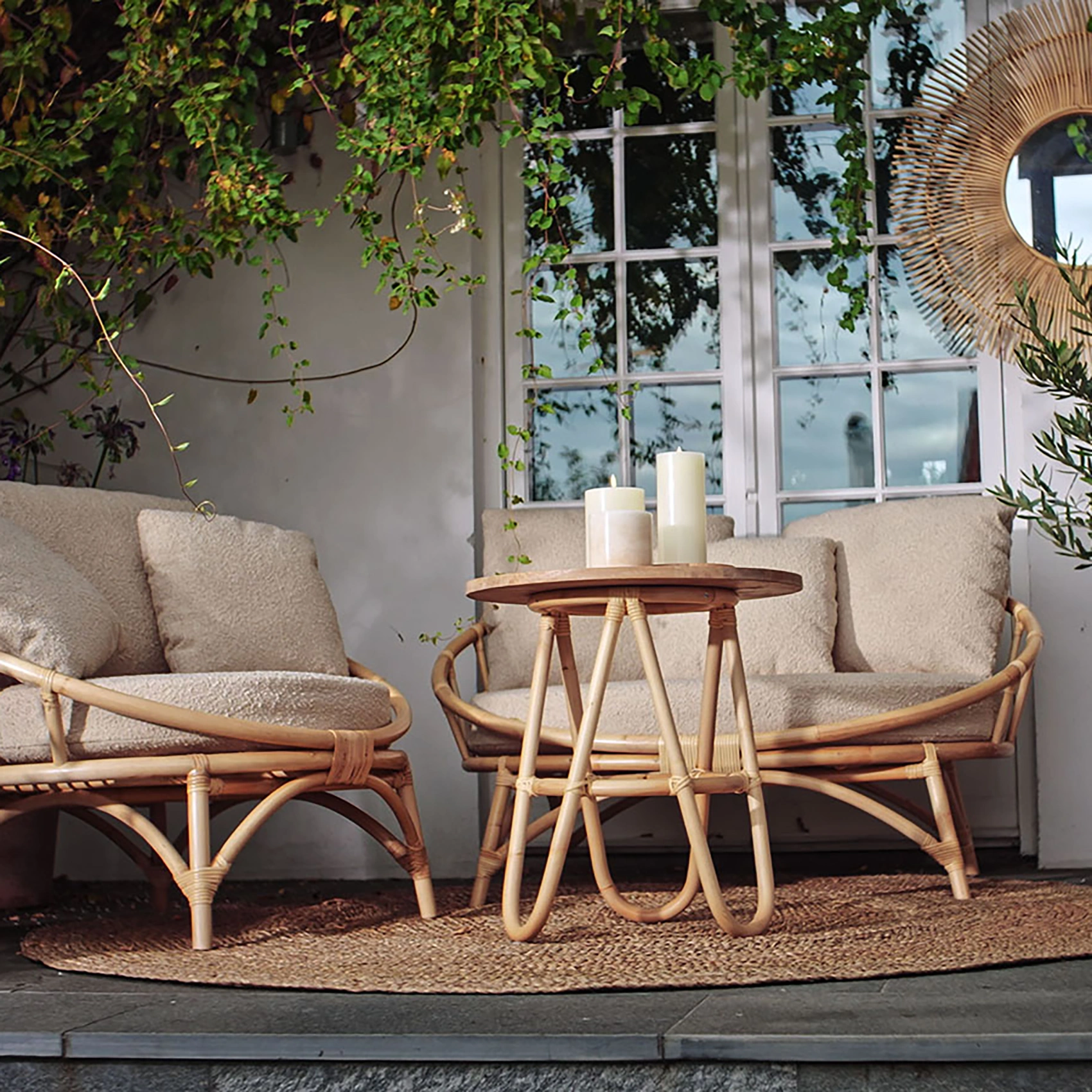 Naturrotting är ett organiskt material som hämtas direkt från växtriket. Dess naturliga färgskiftningar och struktur gör varje möbel unik. Med tiden kan rottingen blekas något i solljus – men snarare än att förlora sin skönhet, utvecklar den en vacker patina. Sienna kräver minimal skötsel: borsta av med en mjuk borste och torka sedan med en fuktig trasa.