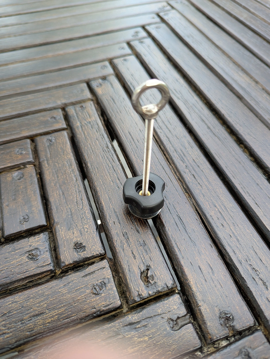 SMARTeye fästögla för trädäck – 6 mm är en innovativ och smidig lösning för dig som vill skapa säkra och flexibla fästpunkter på trädäck, bryggor, plank eller andra träkonstruktioner med brädmellanrum. Fästöglan placeras enkelt i springan mellan brädorna och ger en stabil och diskret förankringspunkt – helt utan att behöva borra, skruva eller göra ingrepp i träet.
