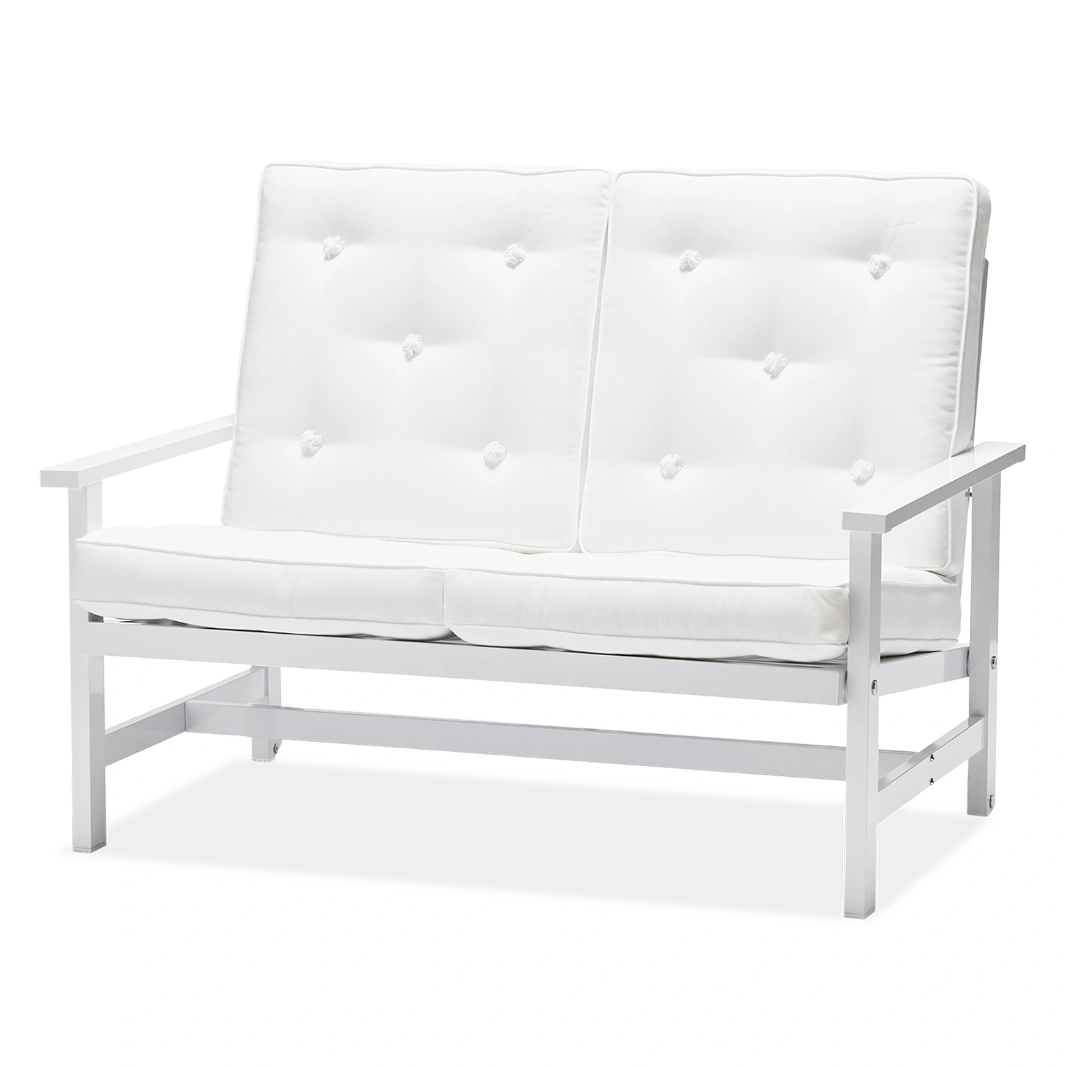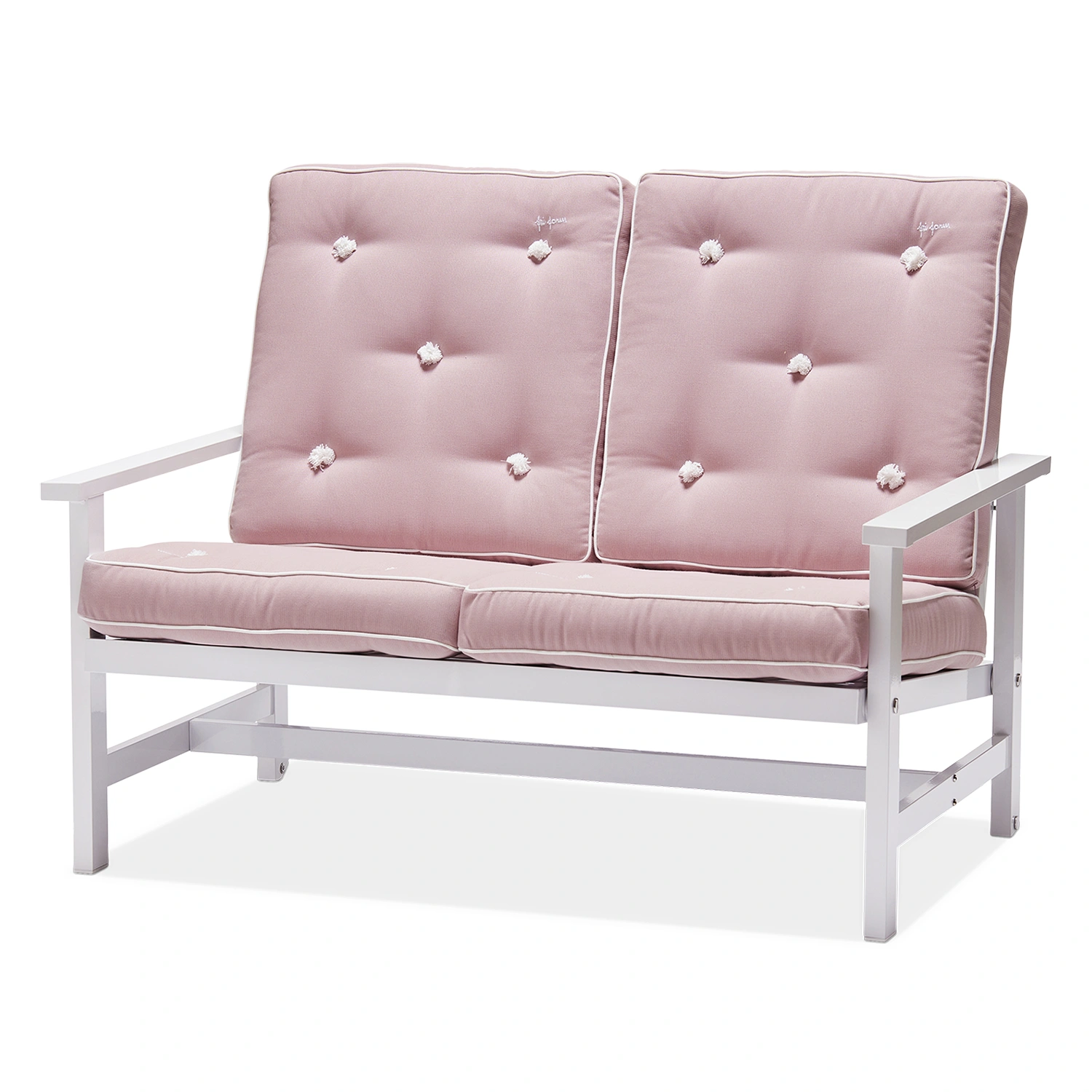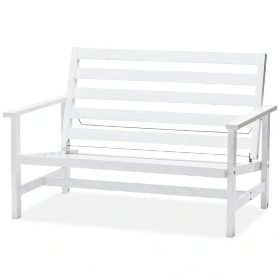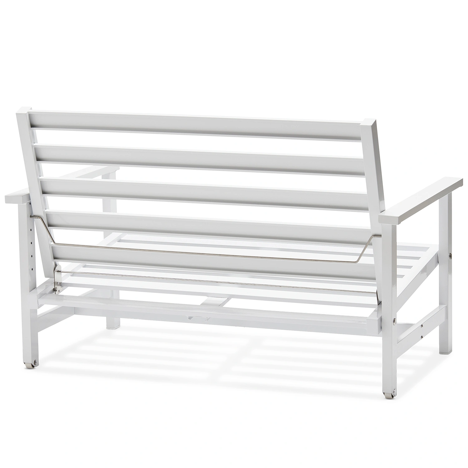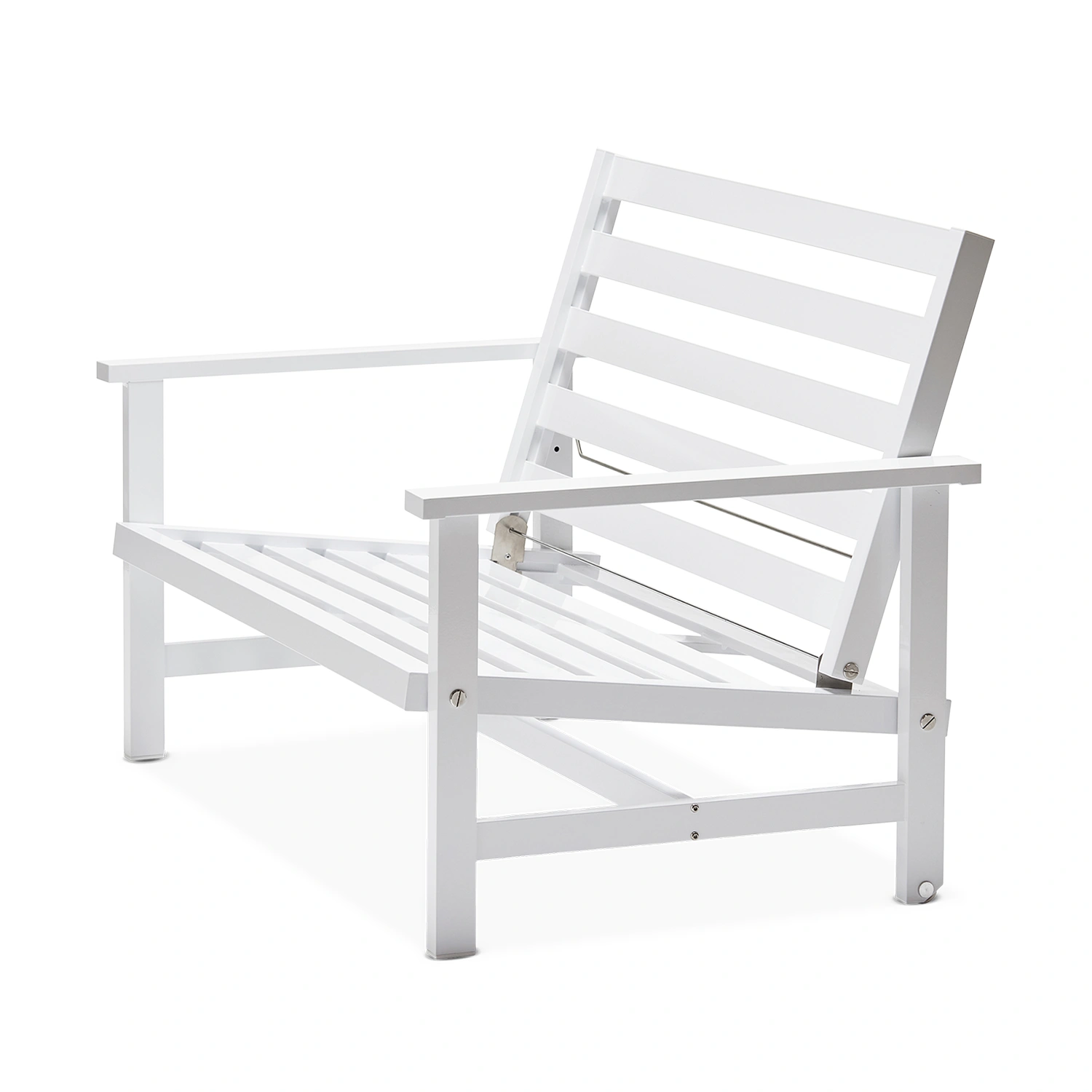 Soffa 08 från Fri Form är en stilren 2-sitssoffa här i vitlackerad aluminium som förenar klassisk design med praktisk hållbarhet. Den robusta stommen är tillverkad i aluminium och epoxylackerad i en elegant vit finish som gör soffan helt underhållsfri och mycket väderbeständig. Aluminiumets naturliga egenskaper gör möbeln lätt, rostfri och enkel att flytta, vilket gör den idealisk för det nordiska klimatet. Soffan behåller sin form och färg år efter år, oavsett om den placeras på altanen, vid havet eller i en skyddad trädgårdsmiljö.