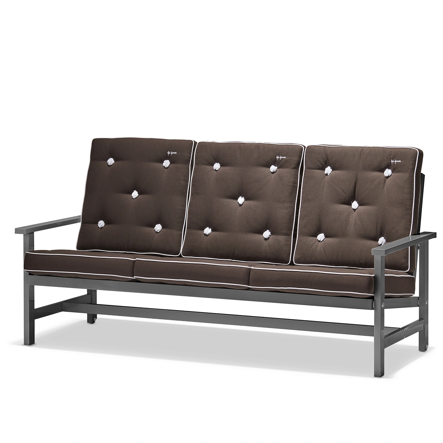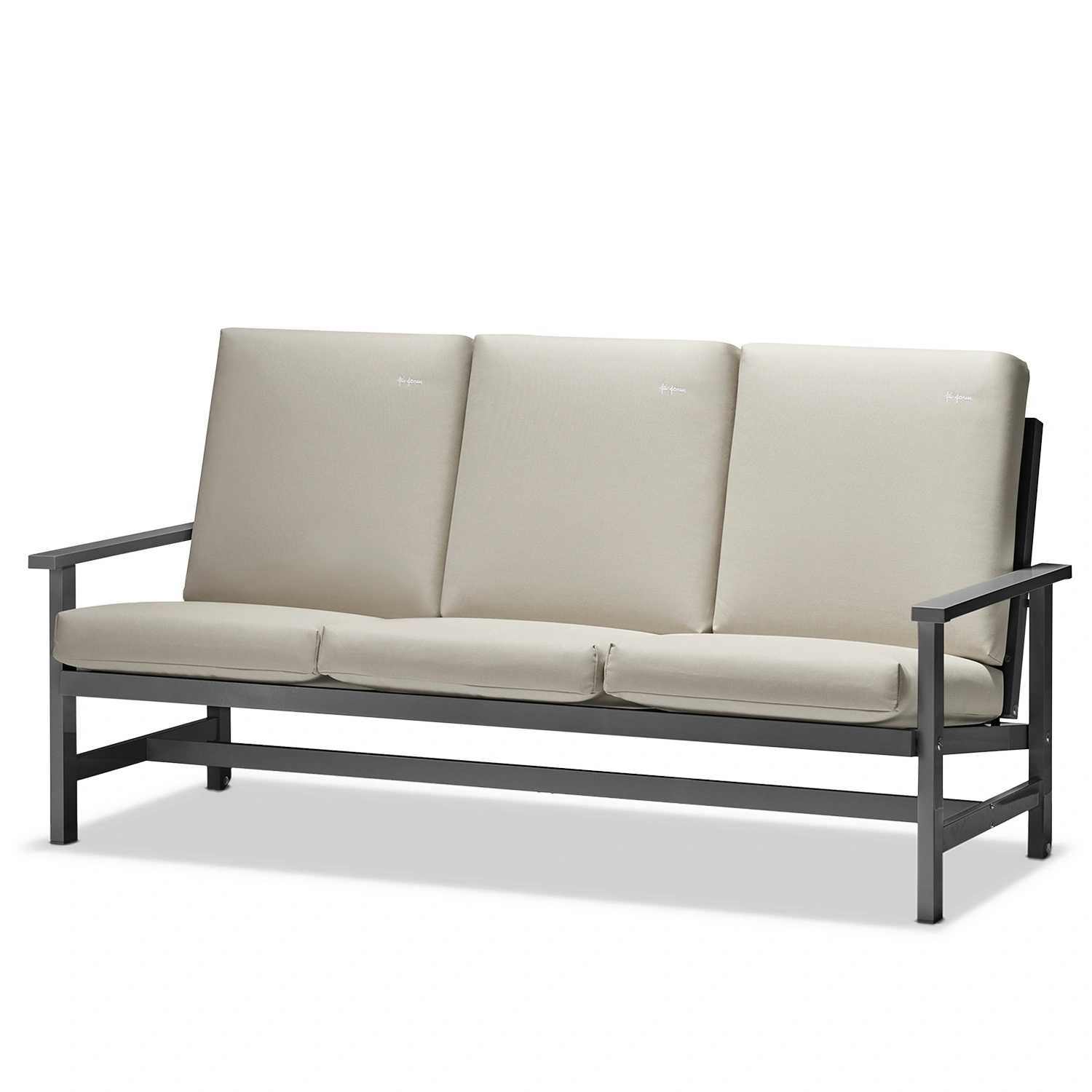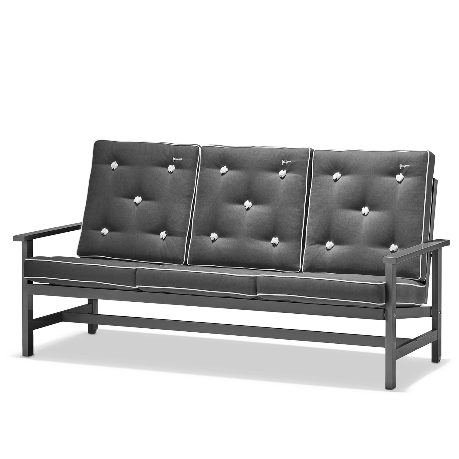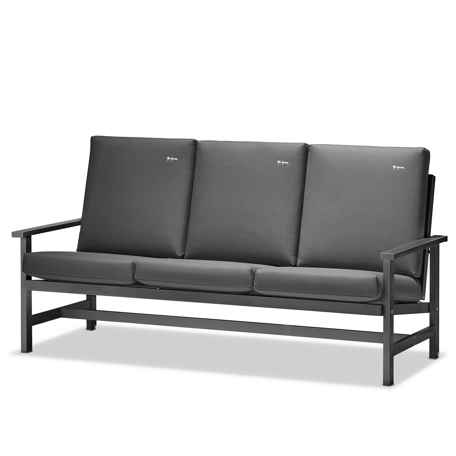 Soffa 09 från Fri Form är en elegant 3-sitssoffa i grålackerad aluminium som kombinerar tidlös design med hög funktionalitet. Den robusta stommen är tillverkad i aluminium och lackerad i en stilren grå finish som gör soffan helt underhållsfri och extremt väderbeständig. Tack vare aluminiumets naturliga egenskaper är möbeln både lätt och rostfri, vilket gör den enkel att flytta och perfekt anpassad för det nordiska klimatet. Soffan behåller sin form och färg år efter år, oavsett om den står på en solig altan, vid havet eller i en skyddad trädgårdsmiljö.