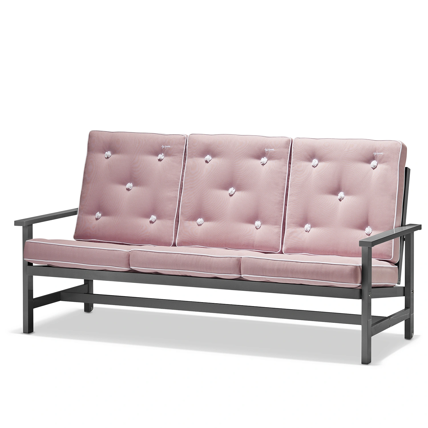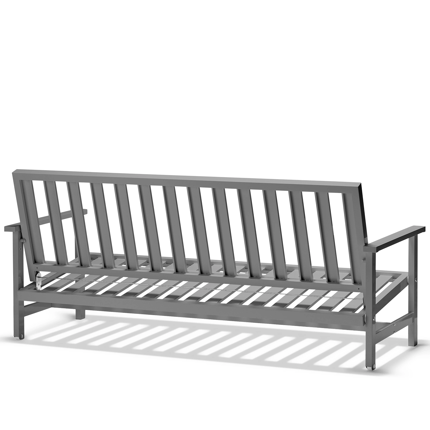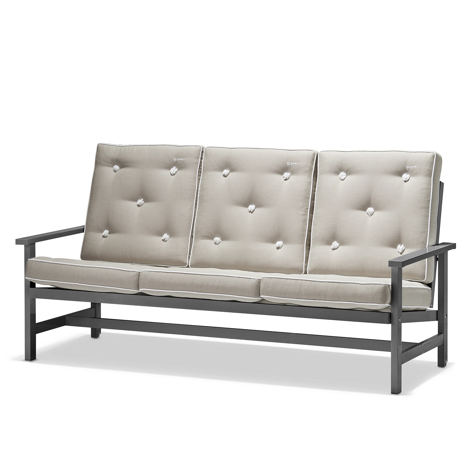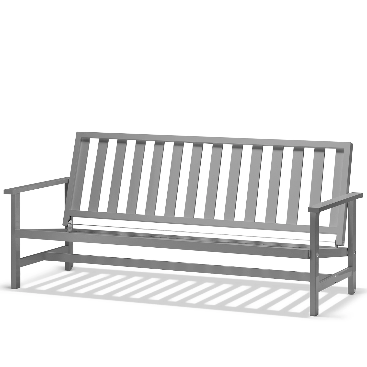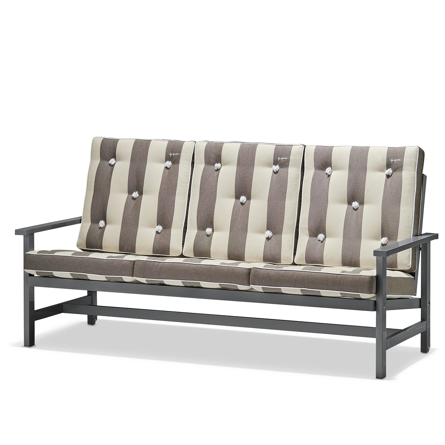 Soffa 09 från Fri Form är en elegant 3-sitssoffa i grålackerad aluminium som kombinerar tidlös design med hög funktionalitet. Den robusta stommen är tillverkad i aluminium och lackerad i en stilren grå finish som gör soffan helt underhållsfri och extremt väderbeständig. Tack vare aluminiumets naturliga egenskaper är möbeln både lätt och rostfri, vilket gör den enkel att flytta och perfekt anpassad för det nordiska klimatet. Soffan behåller sin form och färg år efter år, oavsett om den står på en solig altan, vid havet eller i en skyddad trädgårdsmiljö.