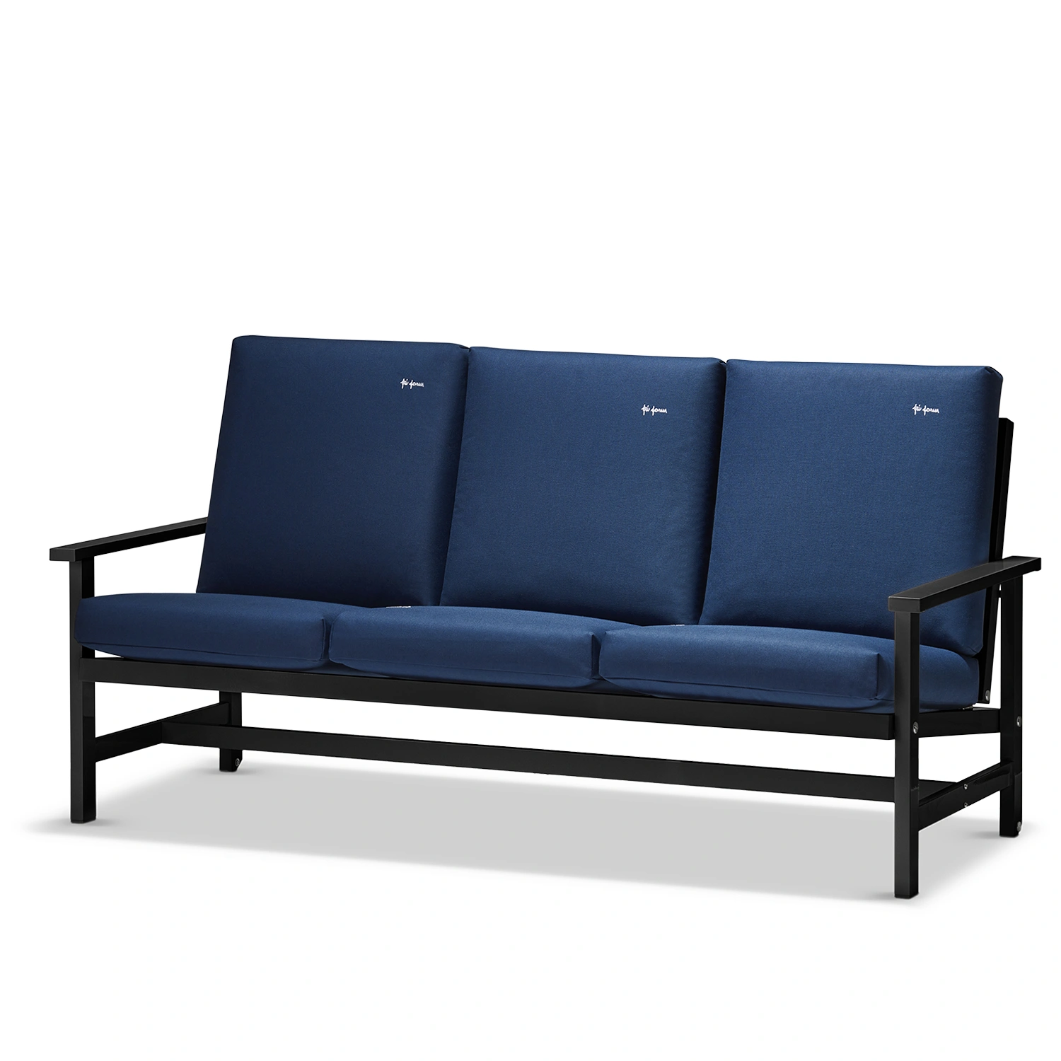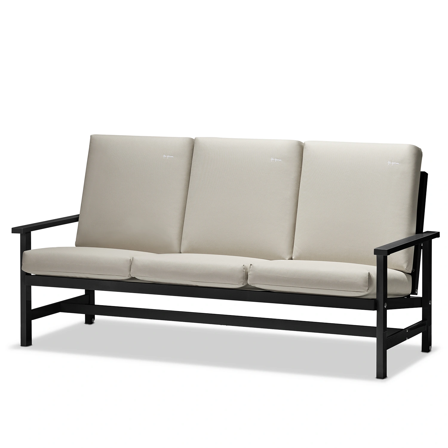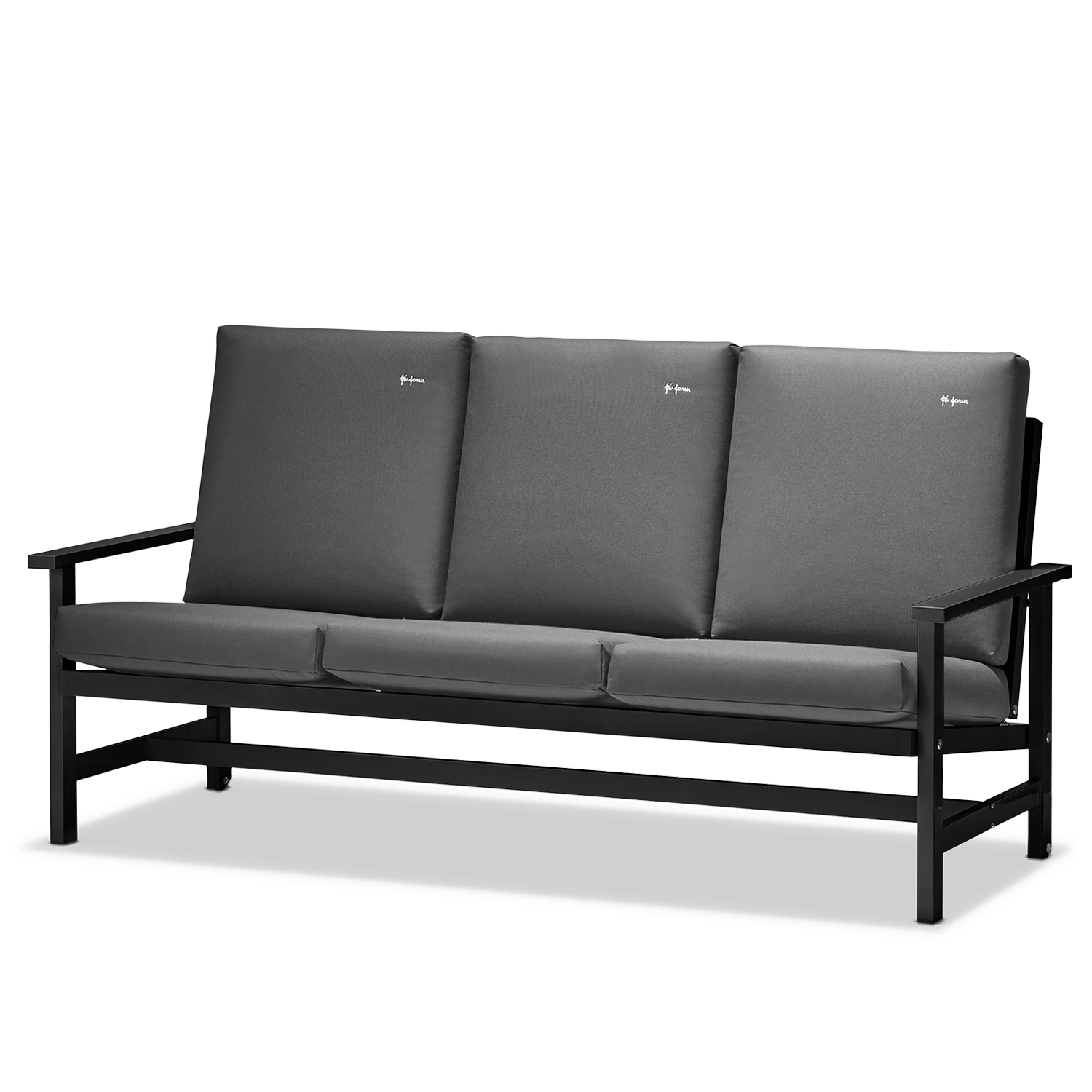 Soffa 09 från Fri Form är en elegant 3-sitssoffa i svartlackerad aluminium som kombinerar tidlös design med hög funktionalitet. Den robusta stommen är tillverkad i aluminium och epoxylackerad i en stilren svart finish som gör soffan helt underhållsfri och extremt väderbeständig. Tack vare aluminiumets naturliga egenskaper är möbeln både lätt och rostfri, vilket gör den enkel att flytta och perfekt anpassad för det nordiska klimatet. Soffan behåller sin form och färg år efter år, oavsett om den står på en solig altan, vid havet eller i en skyddad trädgårdsmiljö.