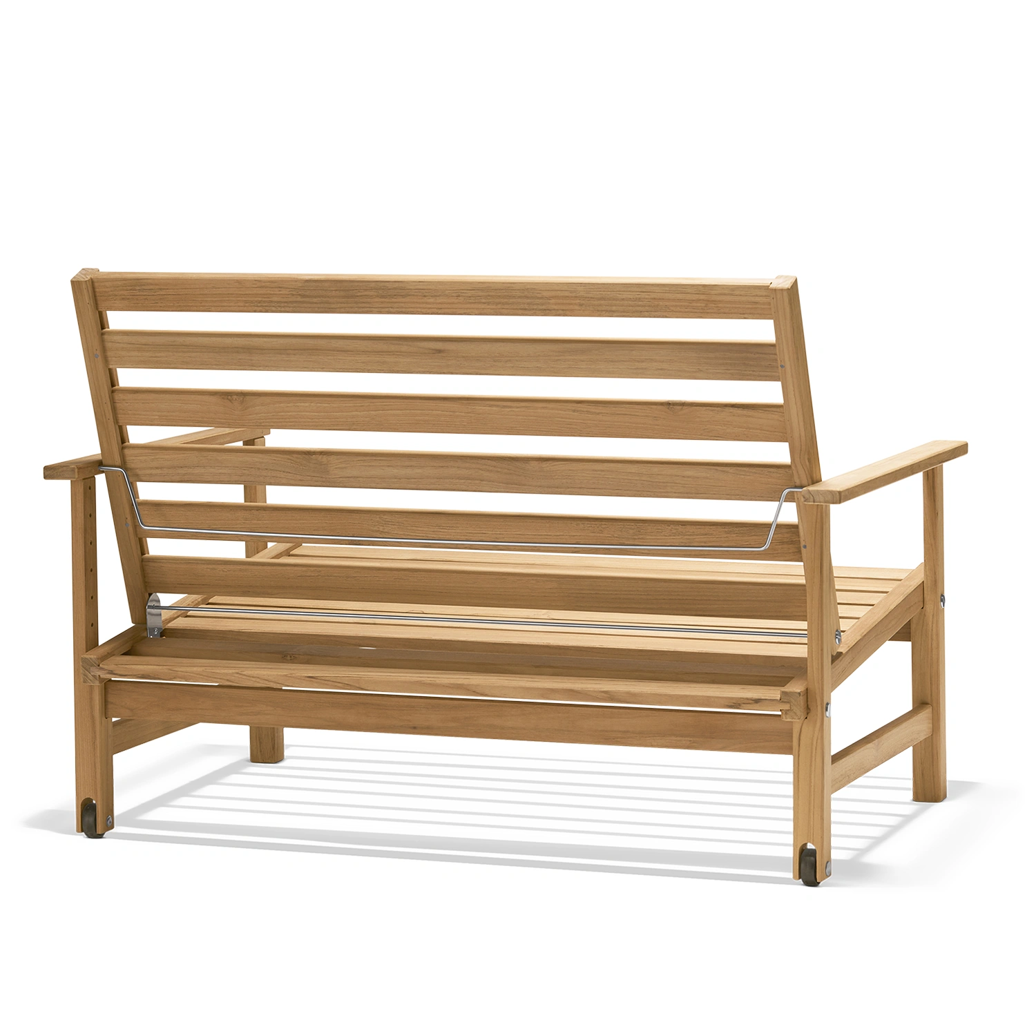 Möbeln är tillverkad i massiv teak, ett slitstarkt och väderbeständigt träslag som kräver minimalt underhåll. Rengör med mild tvållösning och mjuk borste. För att bevara träets ursprungliga färg kan teakolja appliceras vid behov. Vi rekommenderar möbelskydd vid längre perioder utan användning för bästa livslängd.