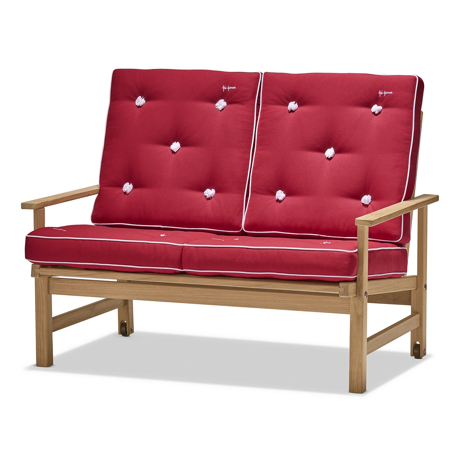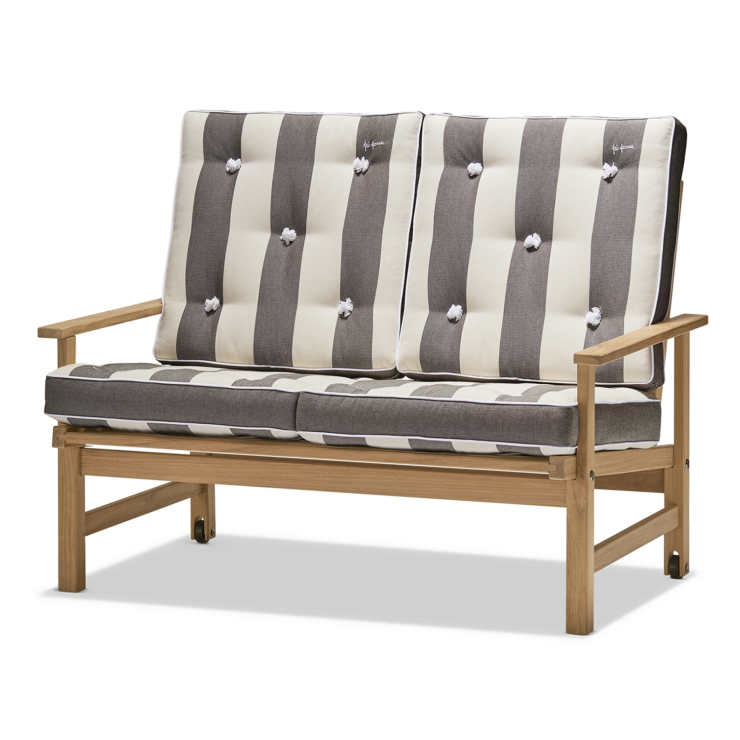Fri Forms dynor är ett rent hantverk och tillverkas för hand från första sömmen till den sista knappen. Sömmerskor med många års erfarenhet gör all sömnad och en person stoppar varje dyna, vilket ger en unik kvalitet och känsla. Dynorna är både utsökta och bekväma, hållbara och vändbara. De tillverkas i tyg anpassat för utomhusbruk och är vatten- och smutsavvisande. Detaljer som passpoaler, vita kantband, tygklädda knappar och Fri Forms broderi kännetecknar serien. Dynorna finns i flera klassiska färger och kompletterar Fri Forms fåtölj.