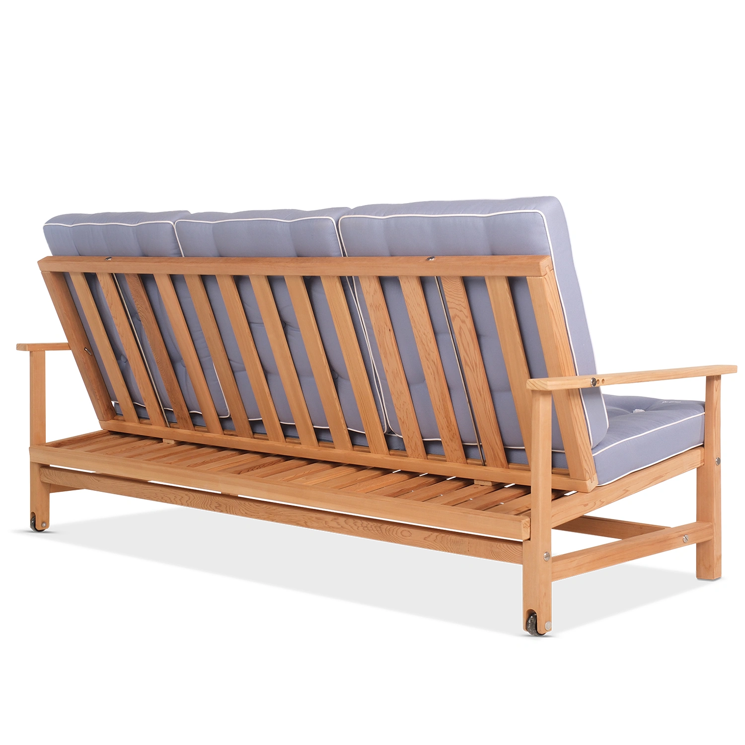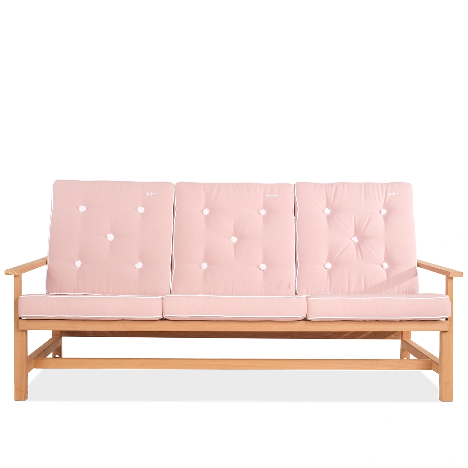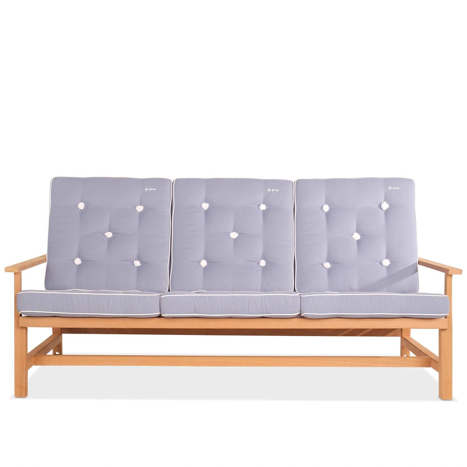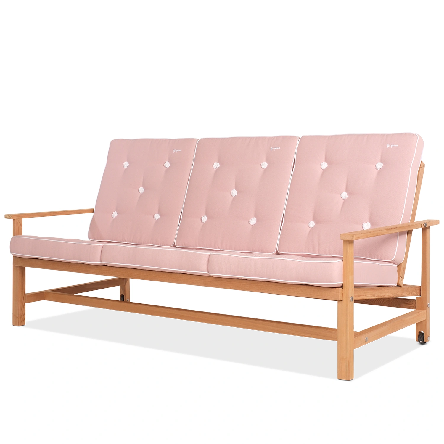 Materialet är inte bara estetiskt tilltalande – det är också naturligt motståndskraftigt mot väder och vind tack vare sina oljor och hartser. Soffan har en lätt nedåtlutande sittyta och bekväma proportioner som bjuder in till långa stunder av avkoppling på terrassen eller i trädgården. Kombinera med Fri Forms klassiska dynor i harmoniska färger för att skapa en personlig och stilfull uteplats. Dynorna finns att välja i olika modeller.