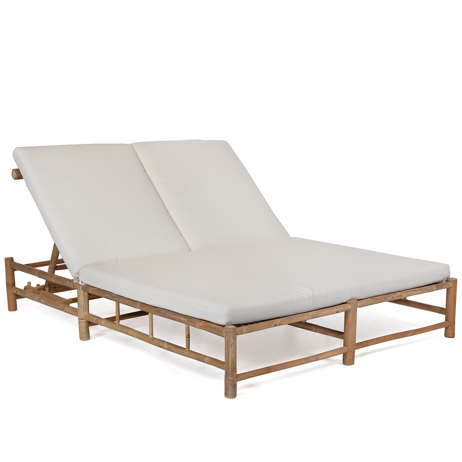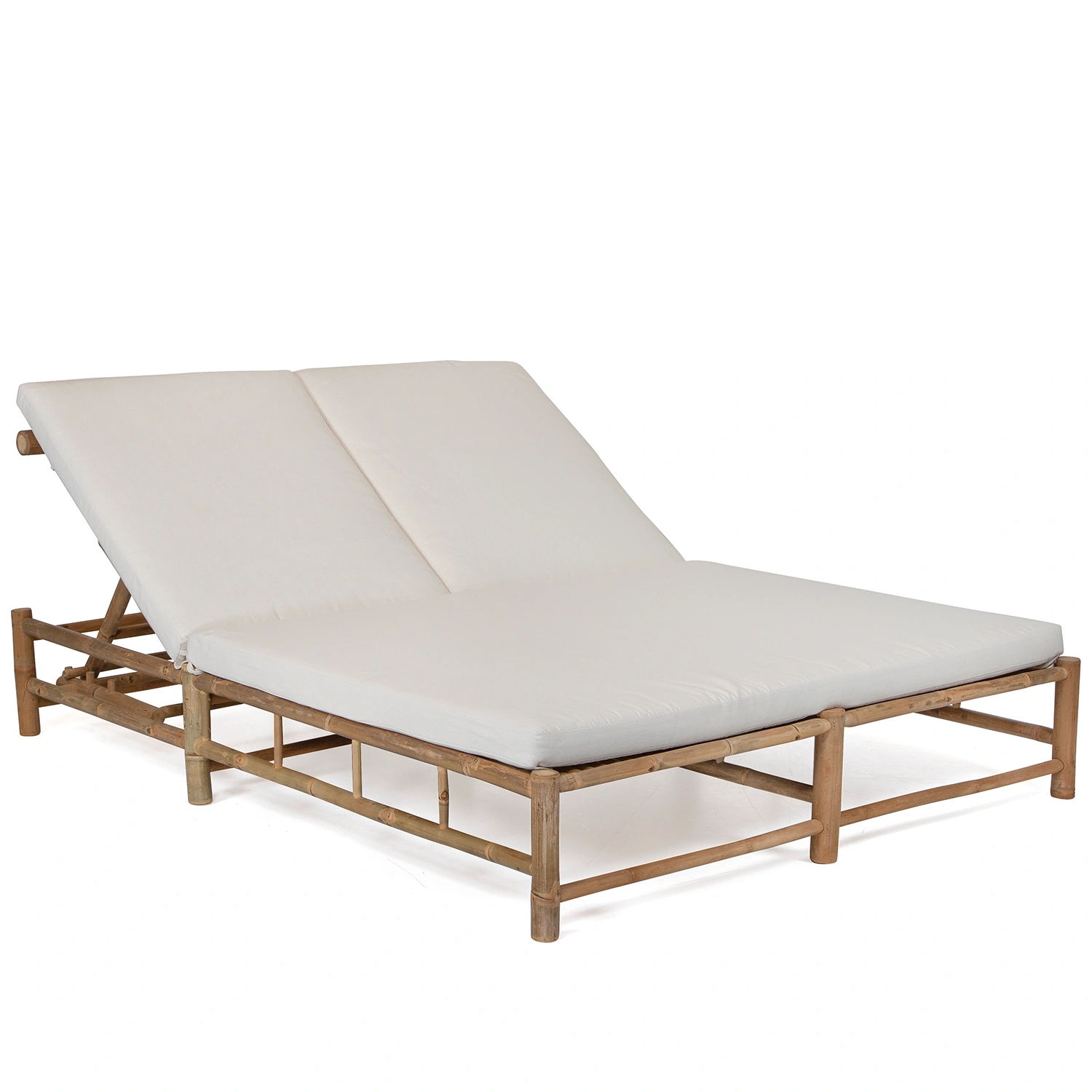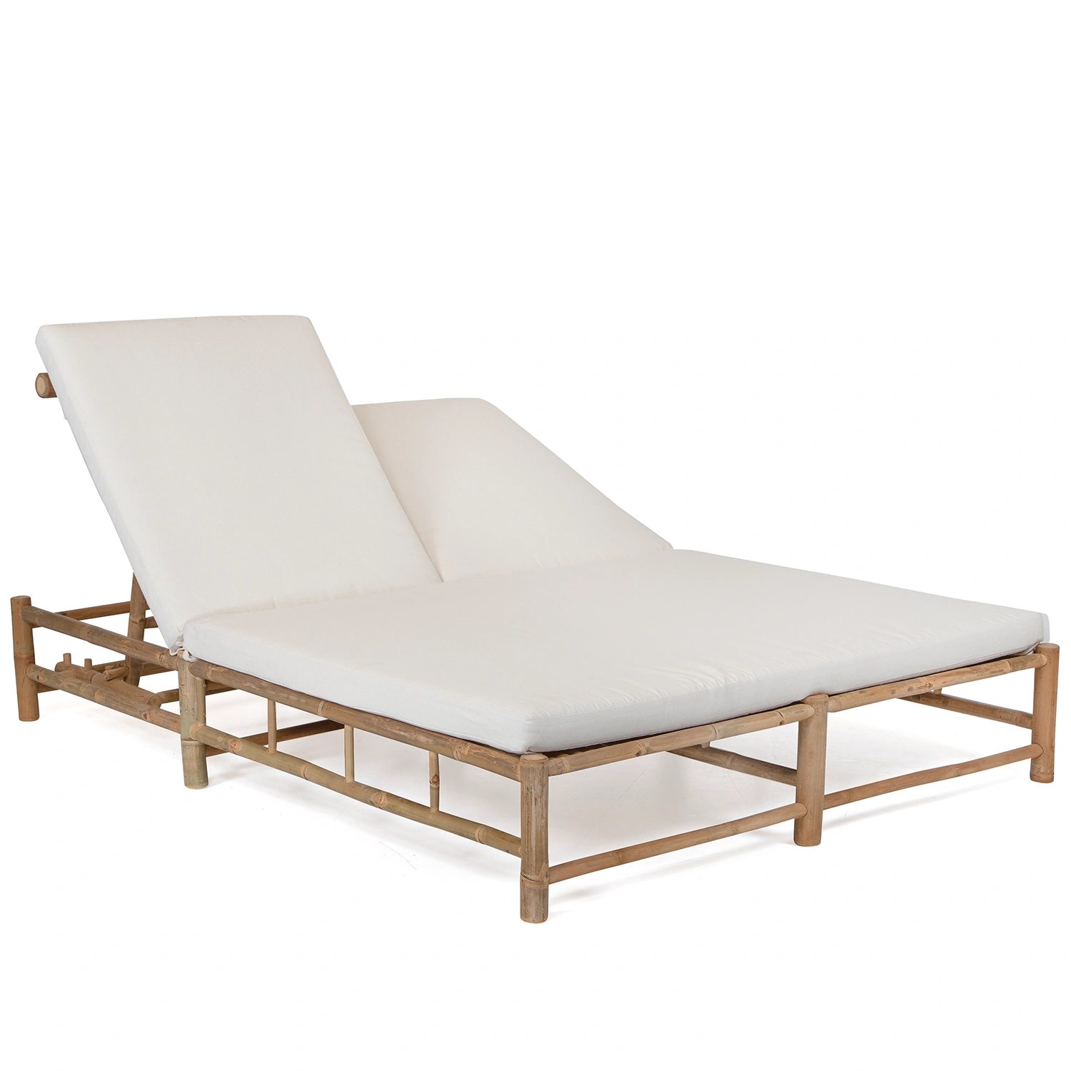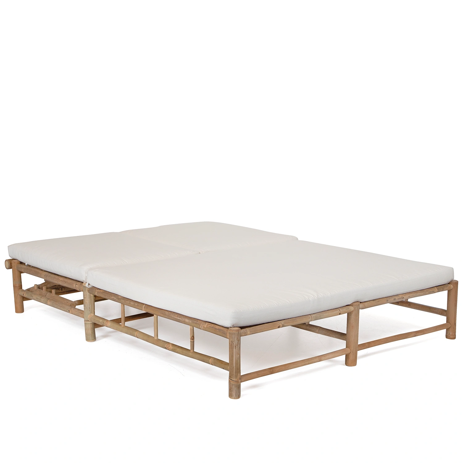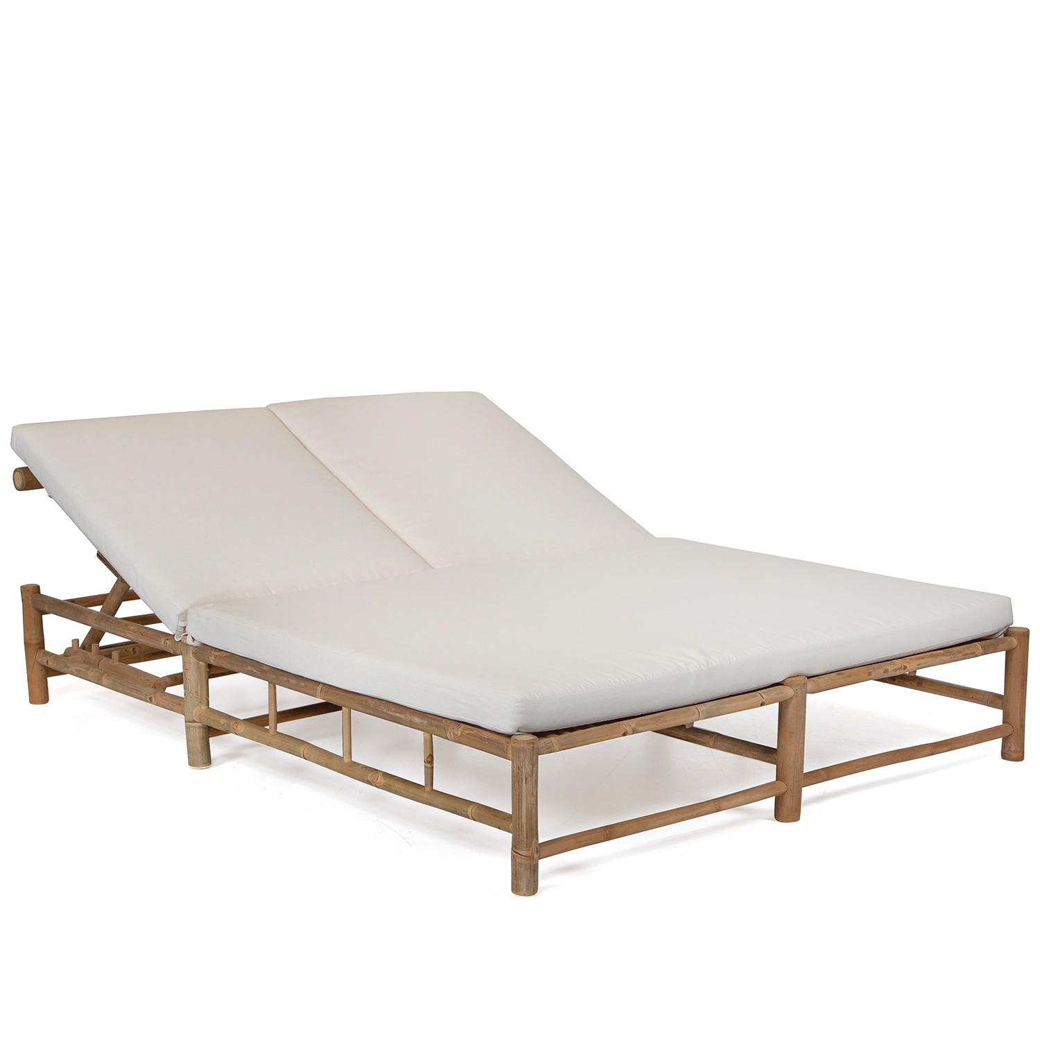 Solsäng med två platser tillverkad i bambu inklusive dyna i offwhite.
