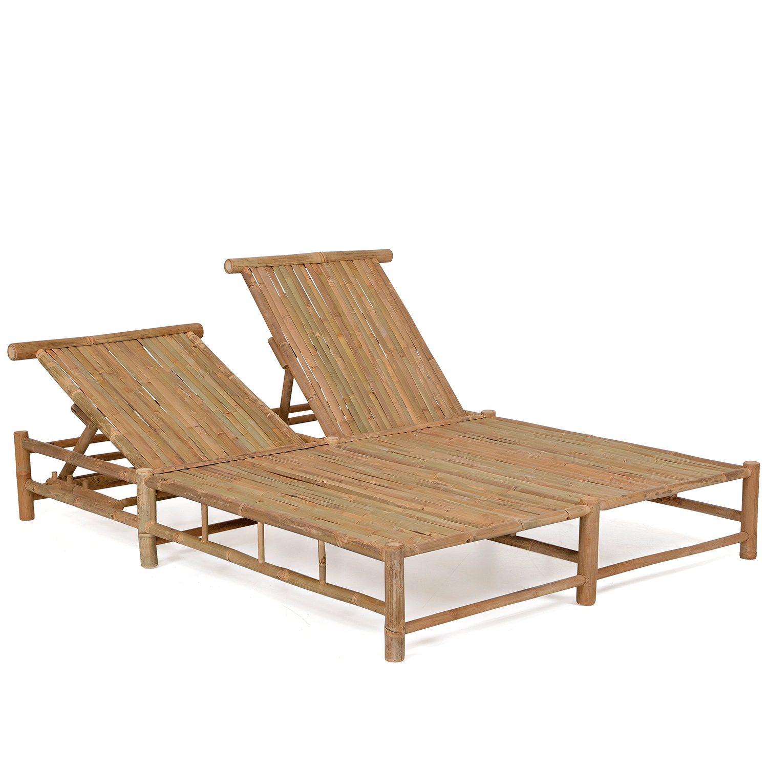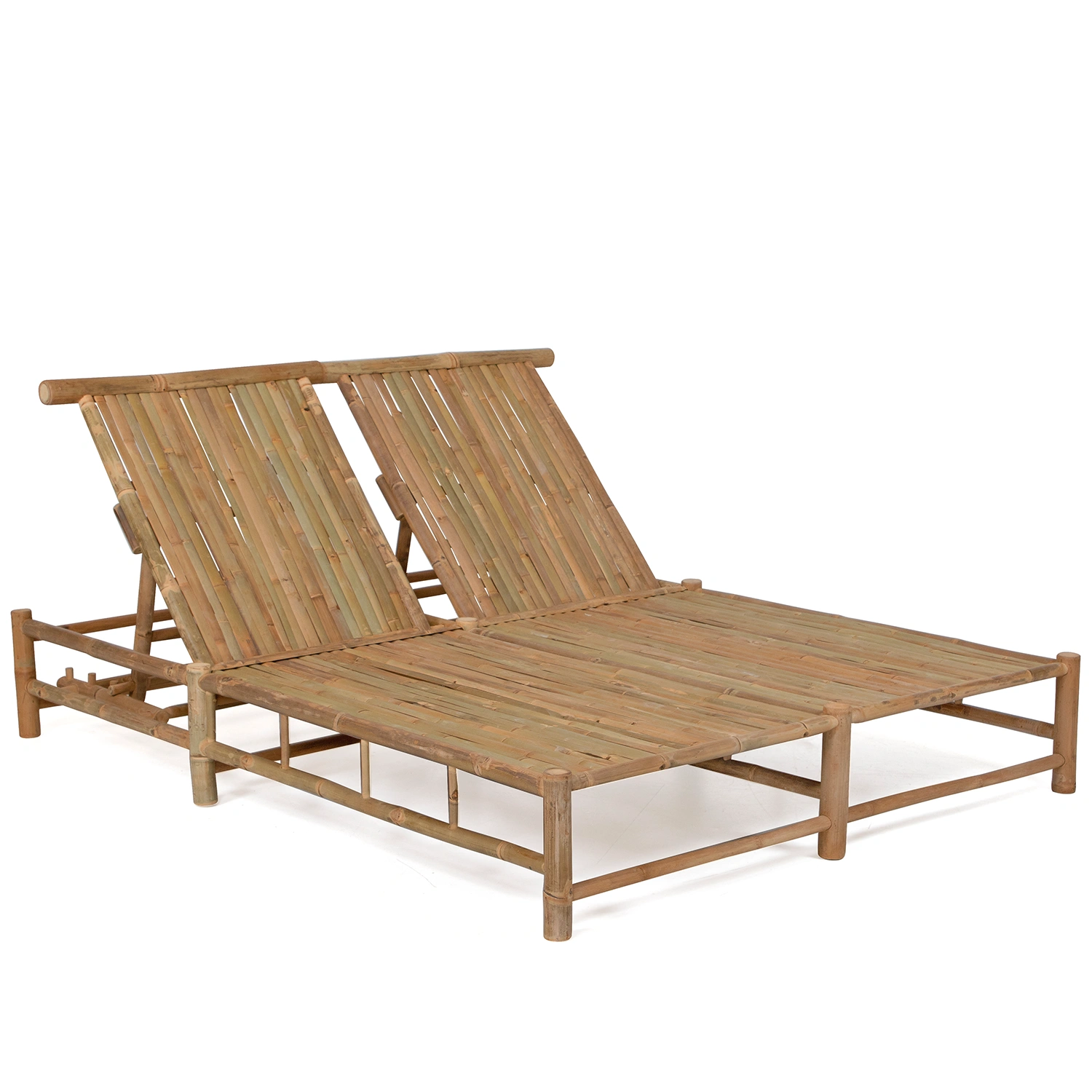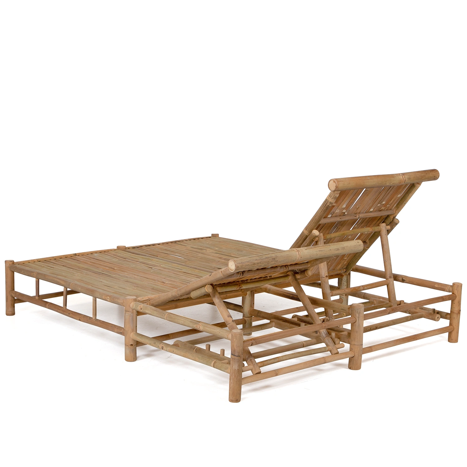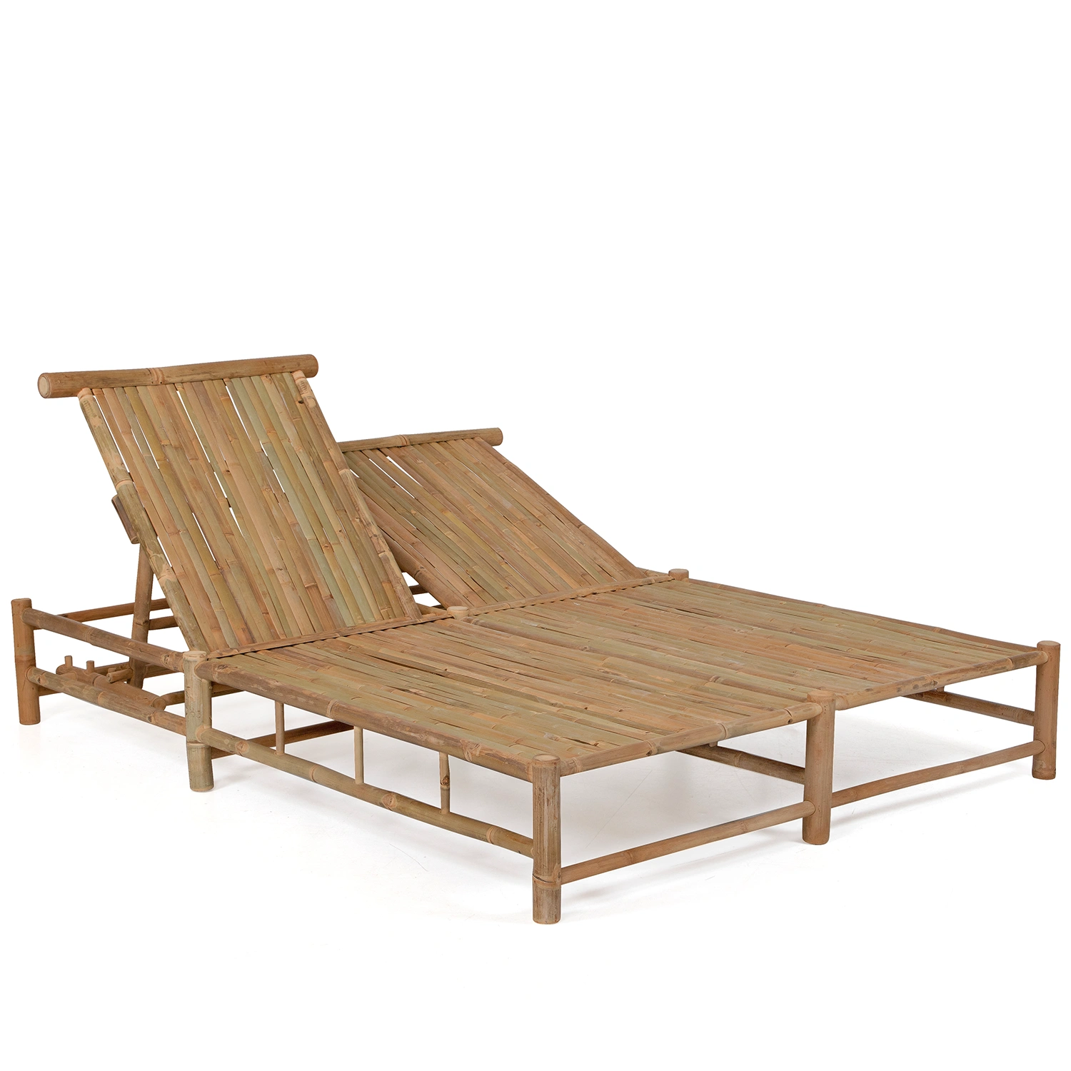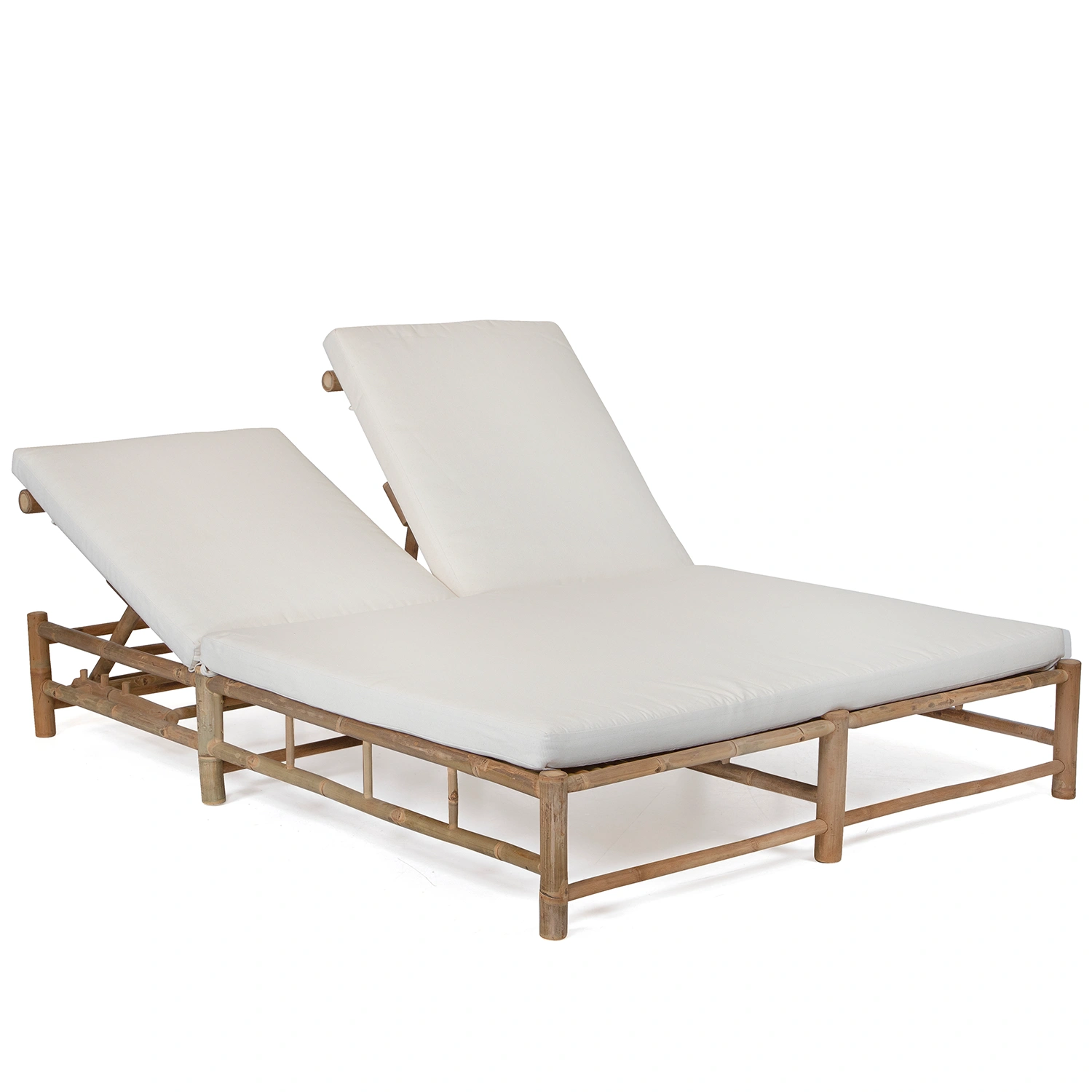 Solsäng med två platser tillverkad i bambu inklusive dyna i offwhite.