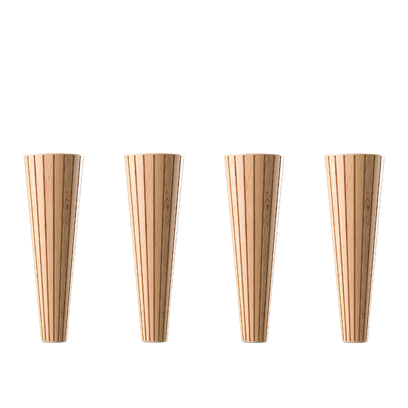 Runda räfflade sängben i trä från Hilding. Sängbenen finns i två utföranden, natur ek och rökt ask. Designen med spår passar utmärkt till Hildings nya sänggavel i trä i matchande design.