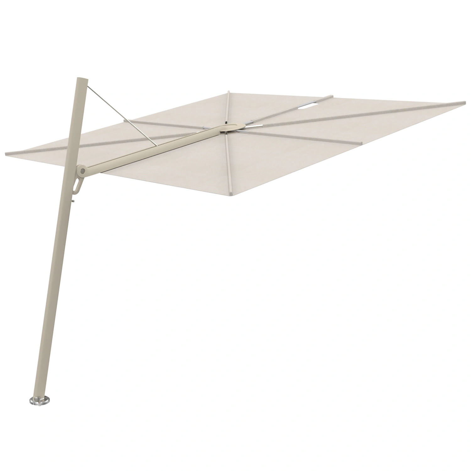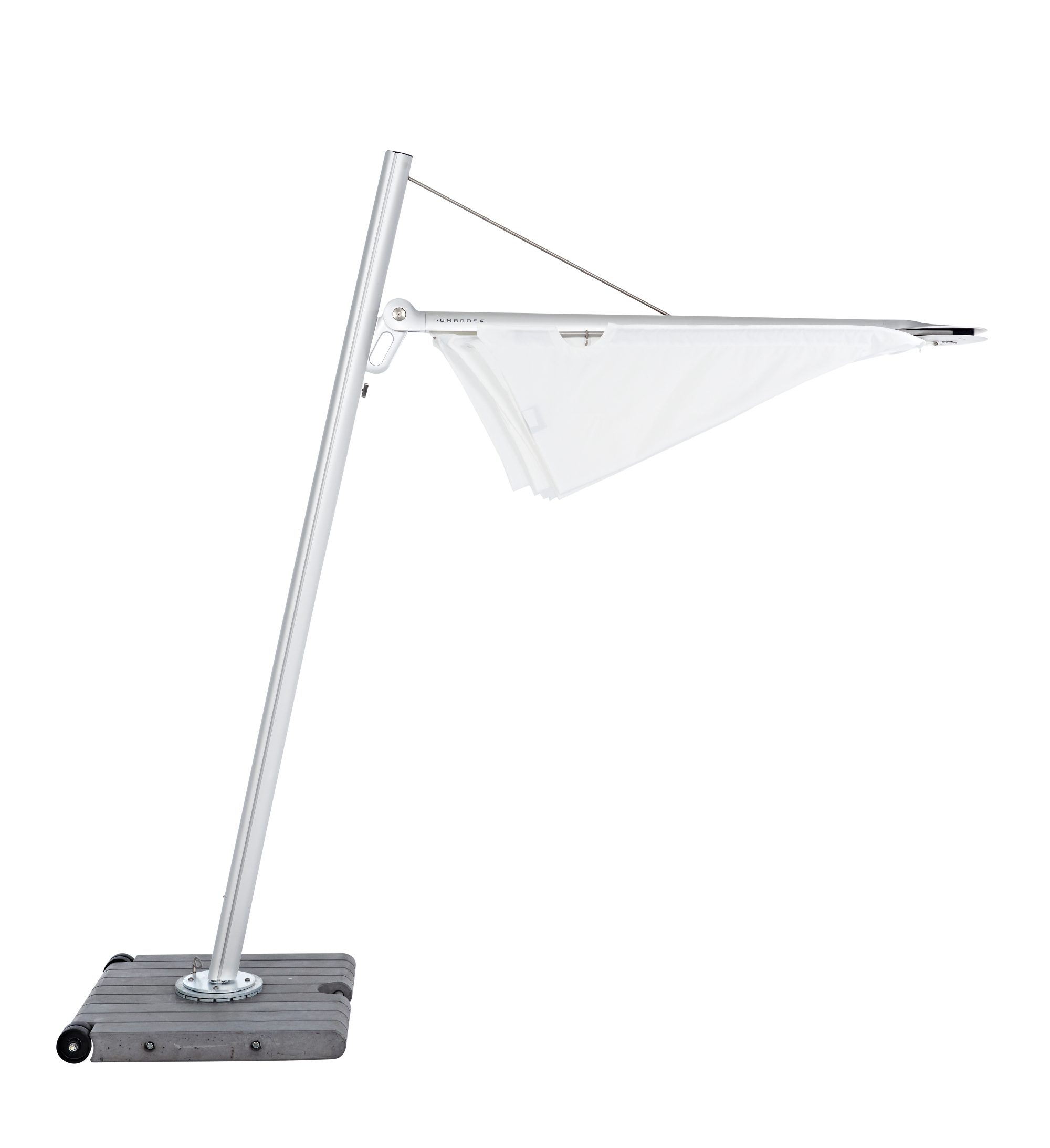 Designen är skapad av Dirk Wynants, känd för sin kombination av teknisk innovation och avskalad estetik. Med en stolphöjd på 260 cm får du dessutom en luftig och öppen känsla under parasollet.