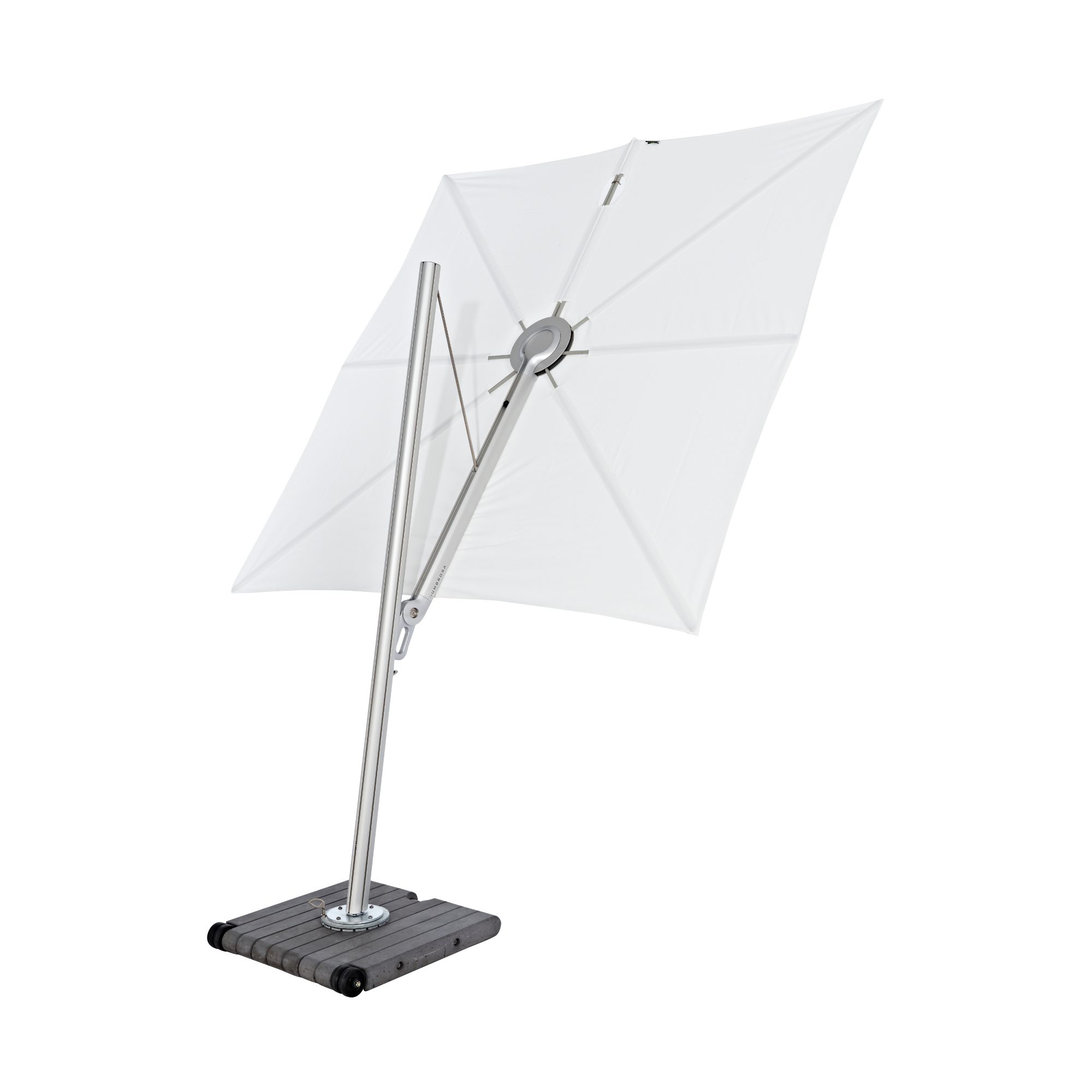 Spectra Forward är ett innovativt och designat hängparasoll för dig som vill ha maximal frihet utan en störande stolpe mitt under parasollet. Med sin lutande stolpe och kvadratiska duk på 300 × 300 cm skapar Spectra en ren och modern siluett, samtidigt som den ger generöst med skugga över uteplatsen. Till skillnad från Spectra straight så lutar Spectra Forward 80° framåt.
