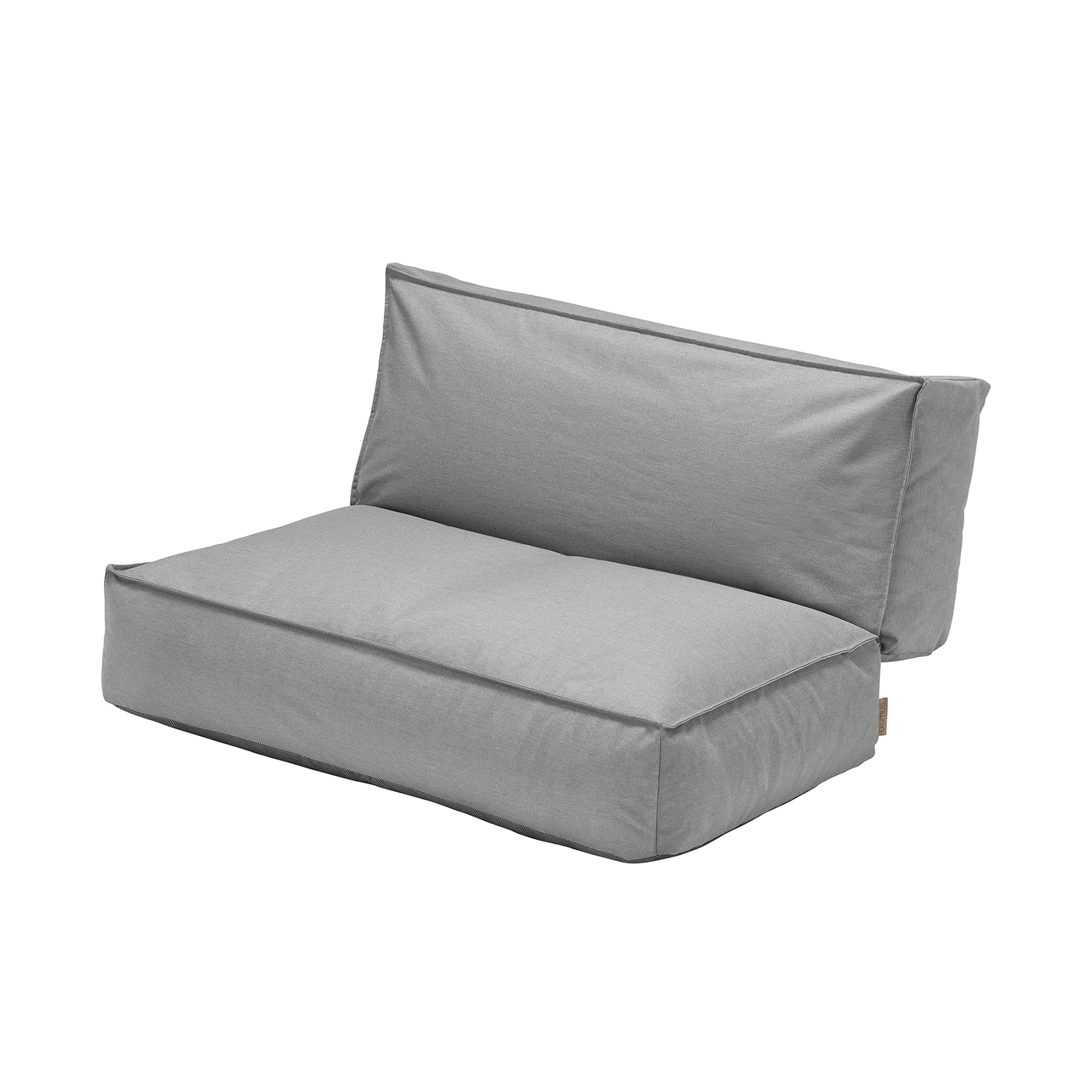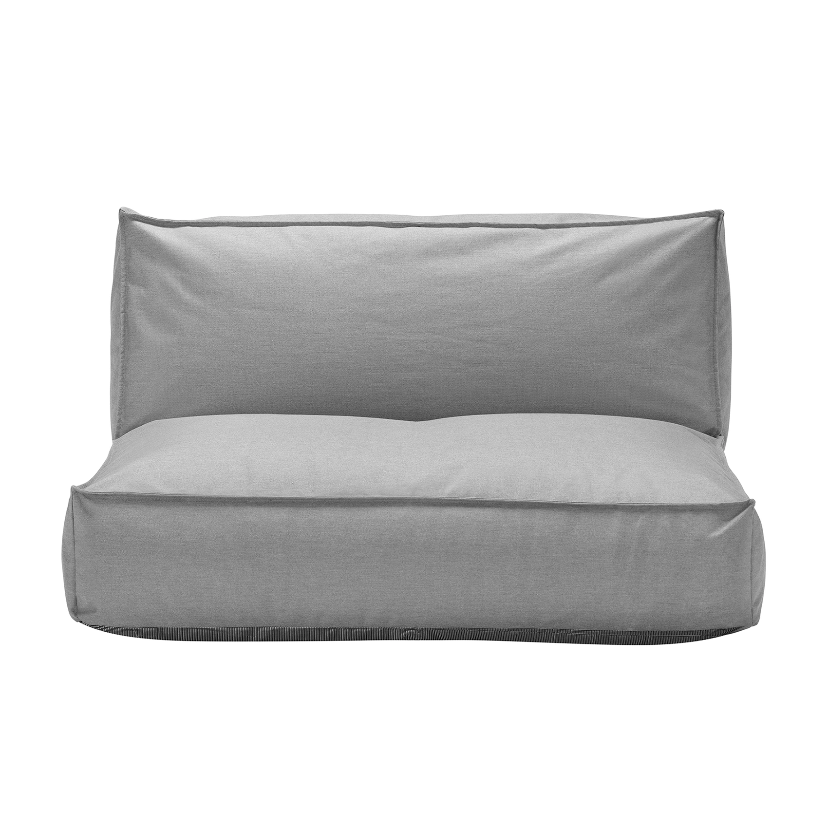 Stay soffa 2-sits är tillverkad av vattenavvisande material i grått tyg. Ryggen kan fällas ner för att skapa en stor 120×120 cm lounge. Den högkvalitativa, vattentäta textilen är lättskött och UV-beständig.