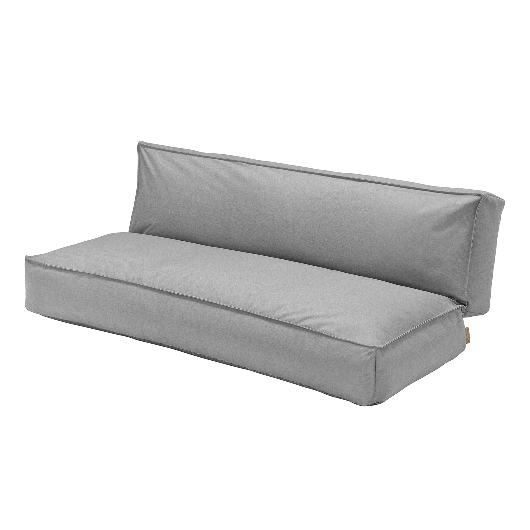 Stay soffa 3-sits är tillverkad av vattenavvisande material i grått tyg. Ryggen kan fällas ner för att skapa en stor 180×120 cm lounge. Den högkvalitativa, vattentäta textilen är lättskött och UV-beständig.