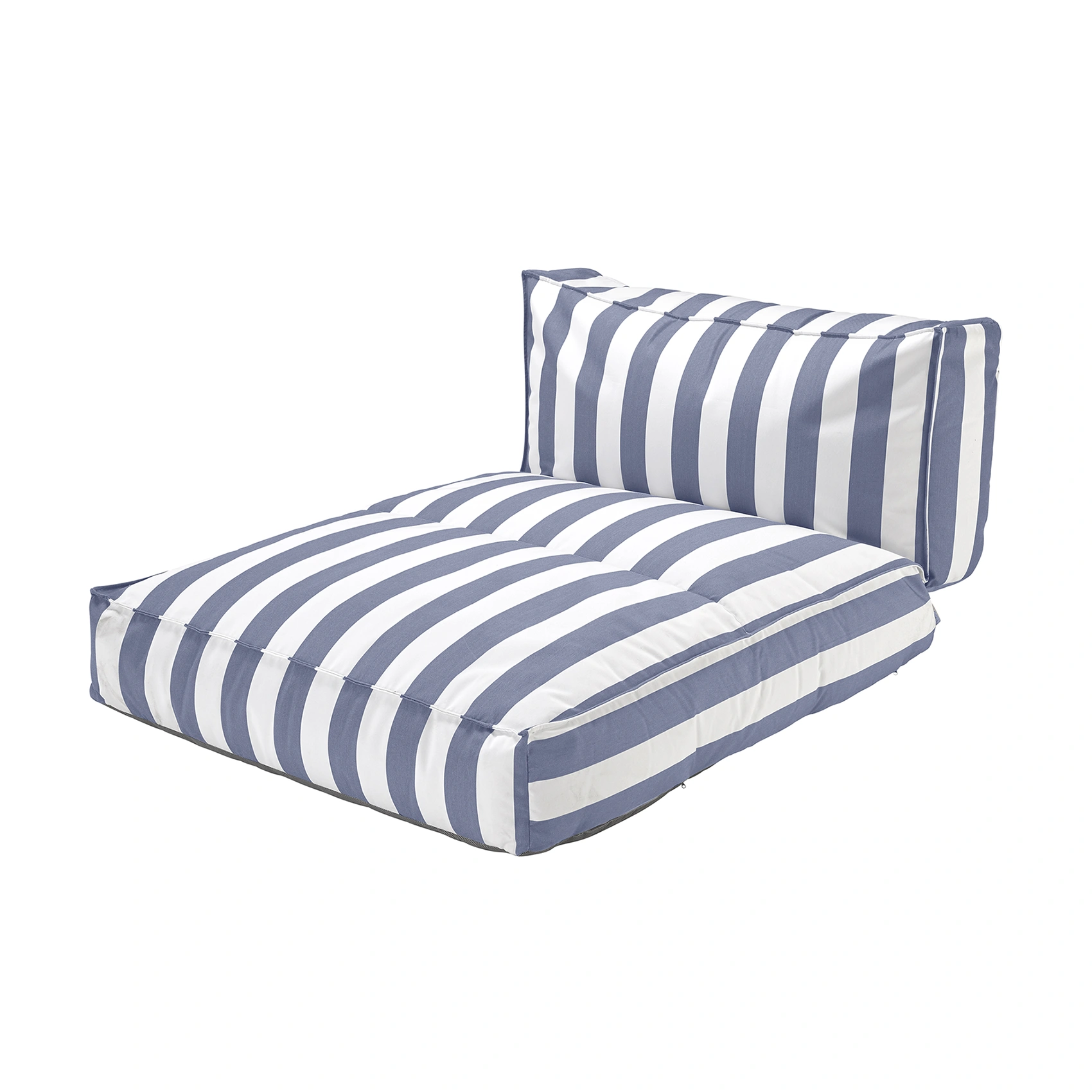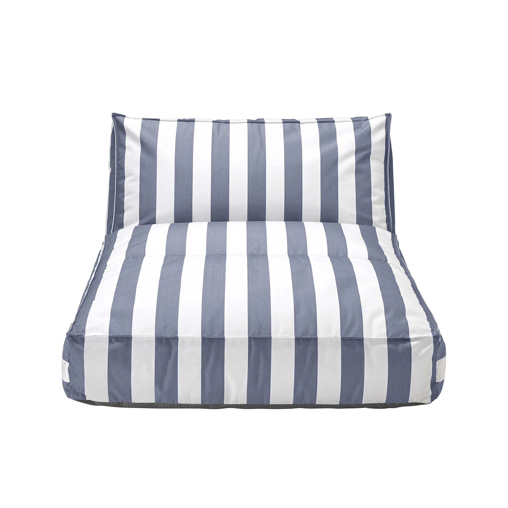 Vilsängen, tillverkad av vattenavvisande material i randigt blått och vitt. Den högkvalitativa, vattentäta textilen är lättskött och UV-beständig.