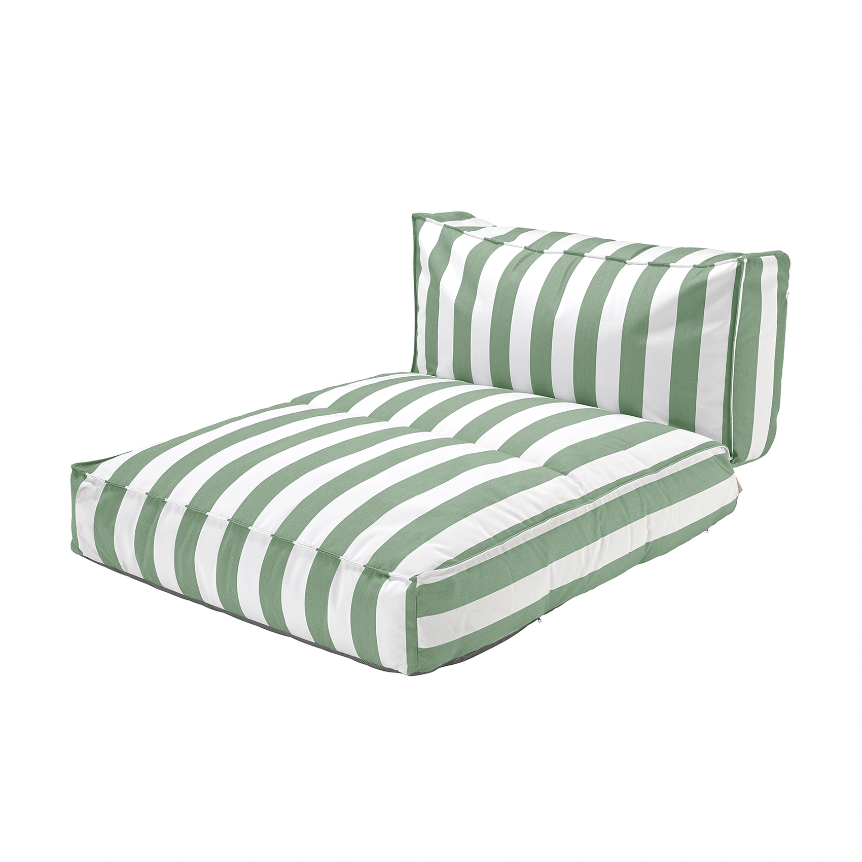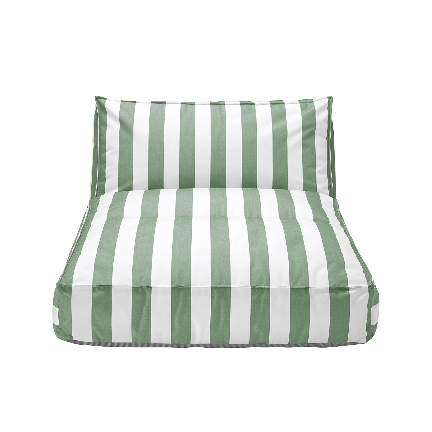 Vilsängen, tillverkad av vattenavvisande material i randigt grönt och vitt. Den högkvalitativa, vattentäta textilen är lättskött och UV-beständig.