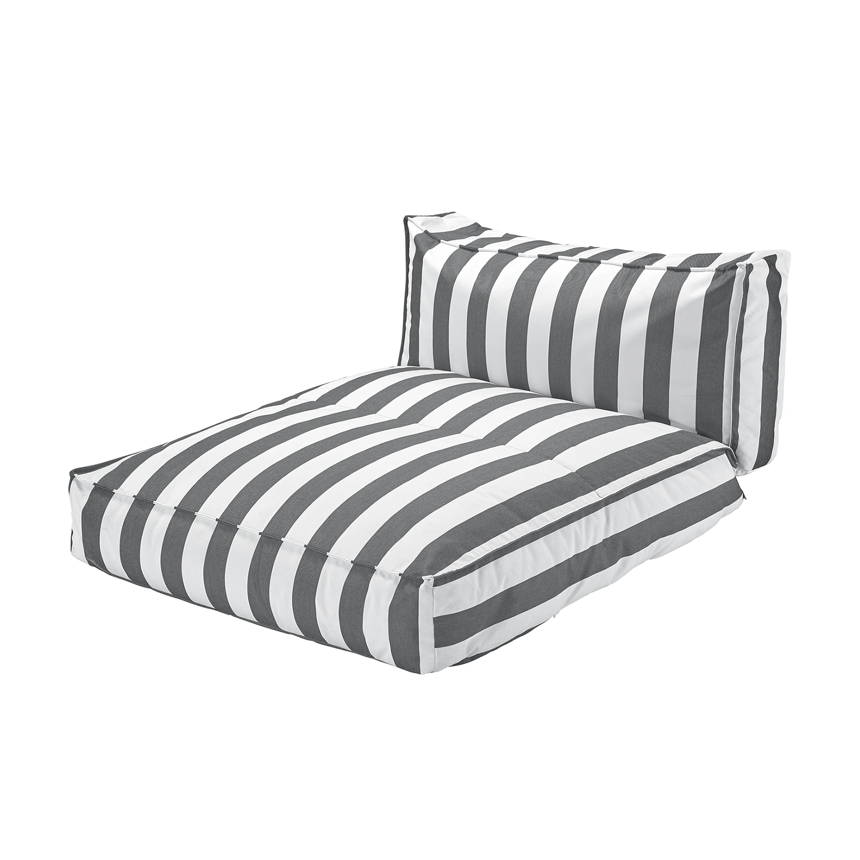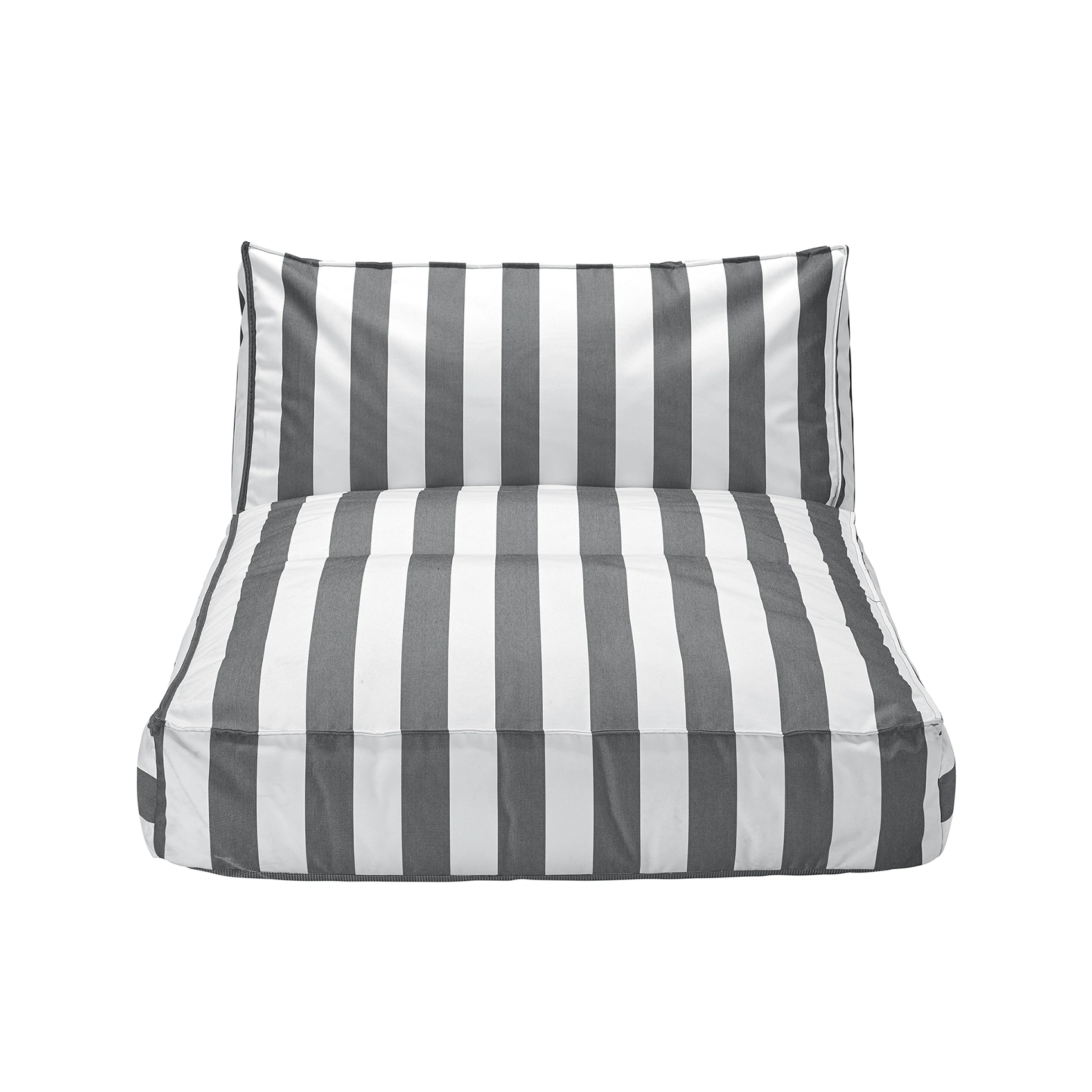 Vilsängen, tillverkad av vattenavvisande material i randigt svart och vitt. Den högkvalitativa, vattentäta textilen är lättskött och UV-beständig.
