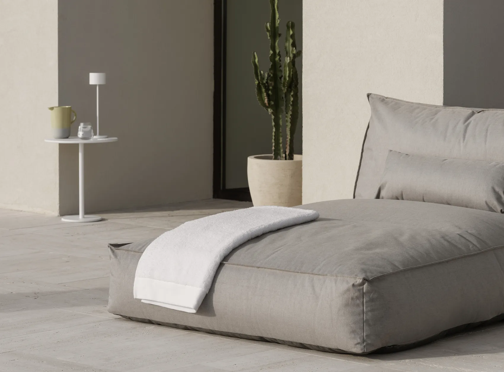 Vilsängen, tillverkad av vattenavvisande material i färgen taupe (som också kallas earth), utlovar den ultimata avkopplingen. Den högkvalitativa, vattentäta textilen är lättskött och UV-beständig.