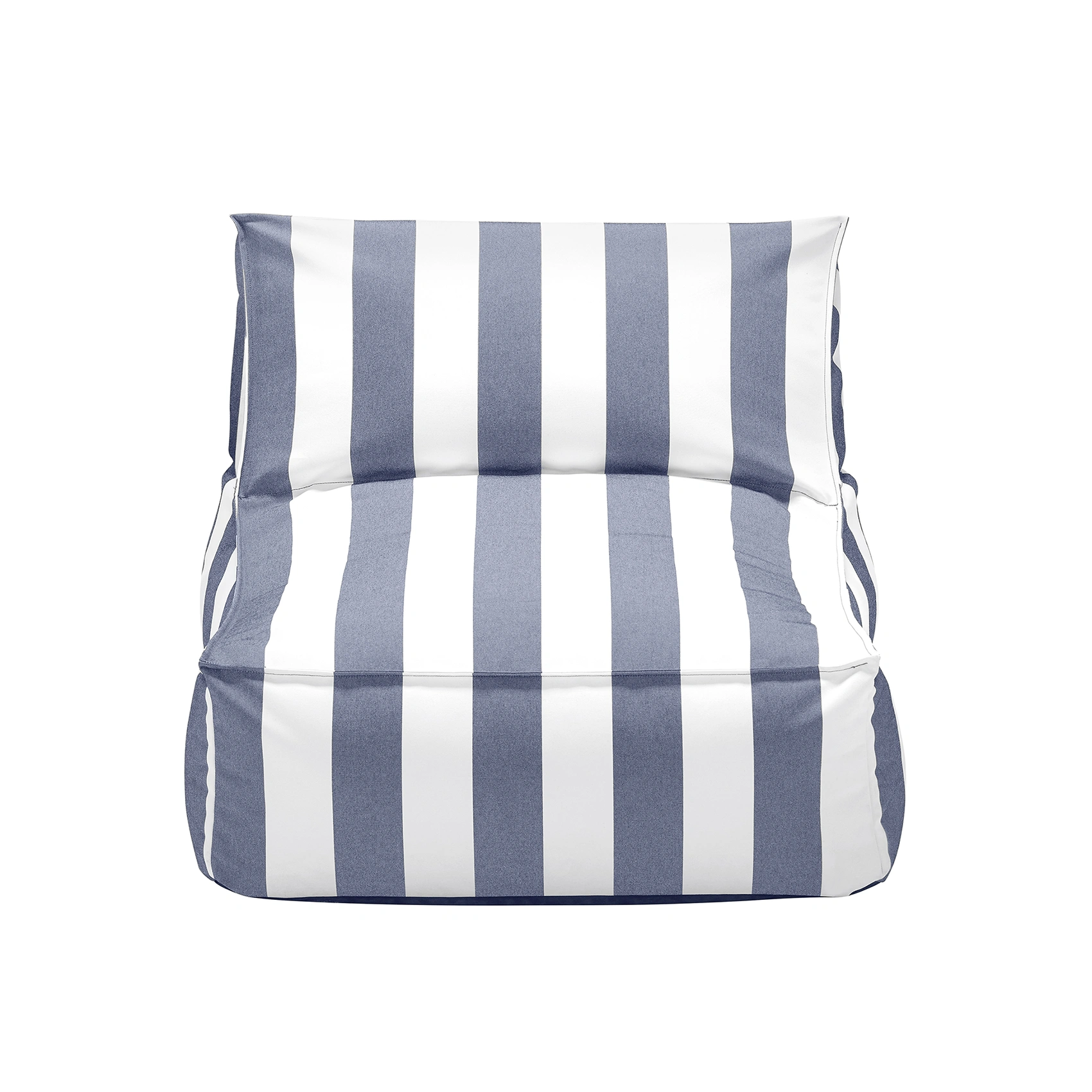 Stay loungefåtölj är tillverkad av vattenavvisande material i blå- och vitrandigt tyg. Den högkvalitativa, vattentäta textilen är lättskött och UV-beständig.