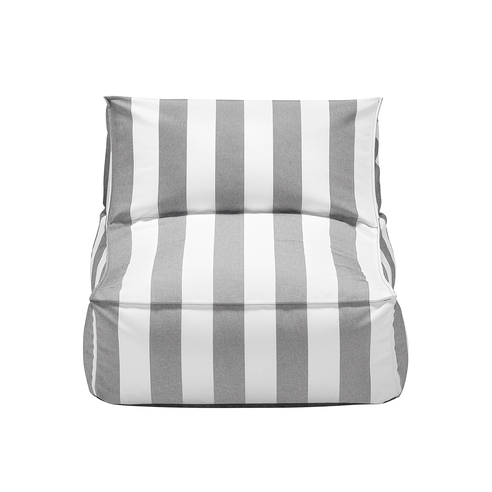 Stay loungefåtölj är tillverkad av vattenavvisande material i grå- och vitrandigt tyg. Den högkvalitativa, vattentäta textilen är lättskött och UV-beständig.
