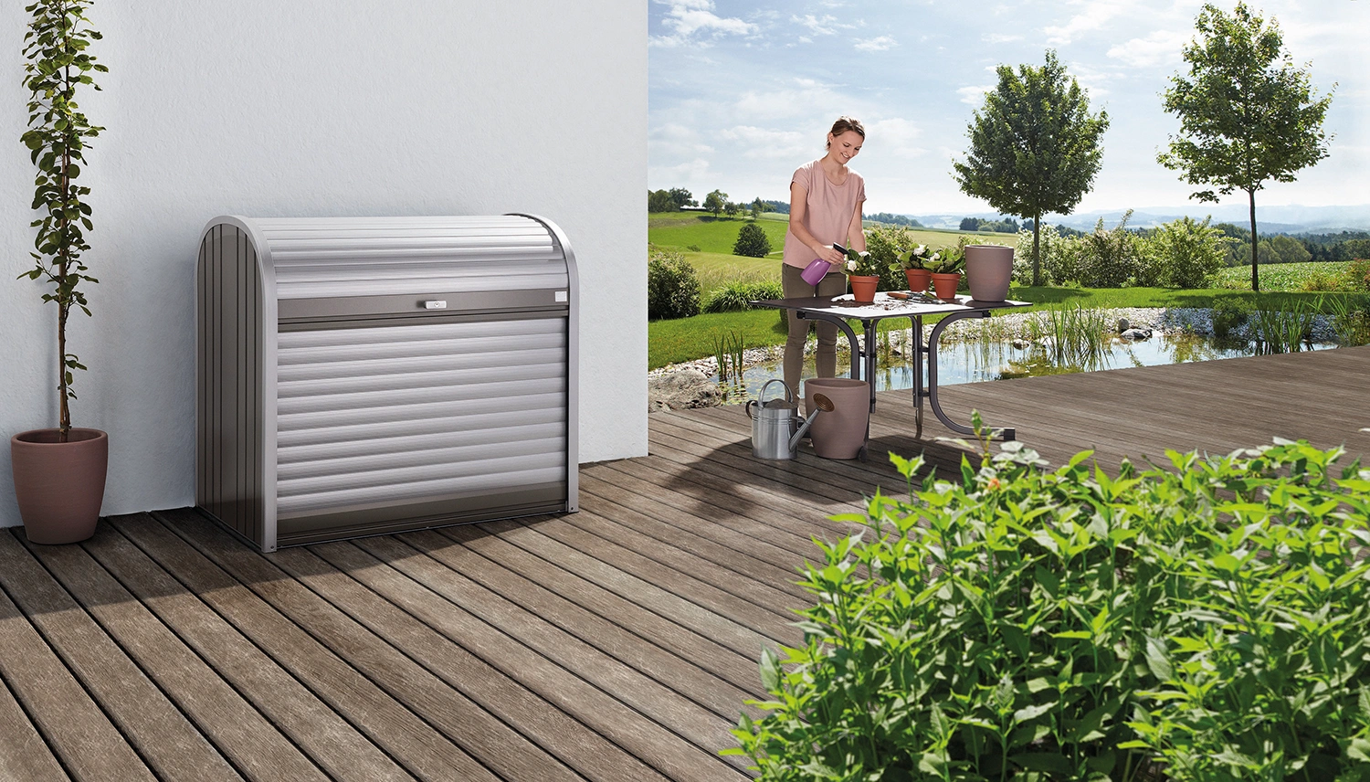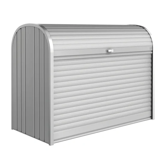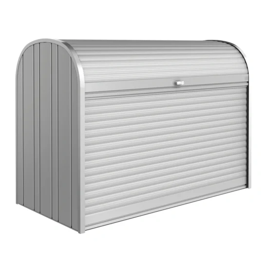 StoreMax erbjuder maximal förvaring utan att kräva mycket plats. En underhållsfri, vattentät och snygg förvaringslösning i aluminium för gräsklipparen, soptunnan, cykeln eller grillen. Utrymmet kan anpassas med hyllor och cykelställ för att passa dina förvaringsbehov.