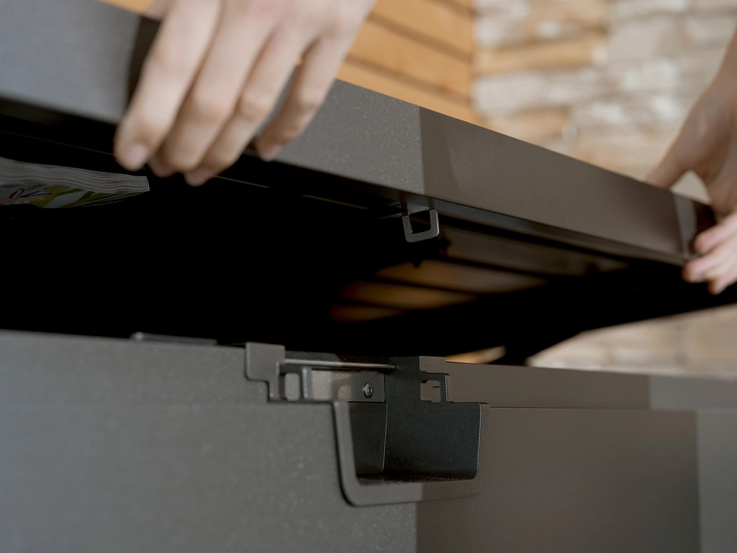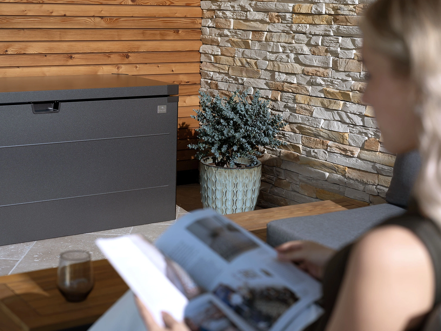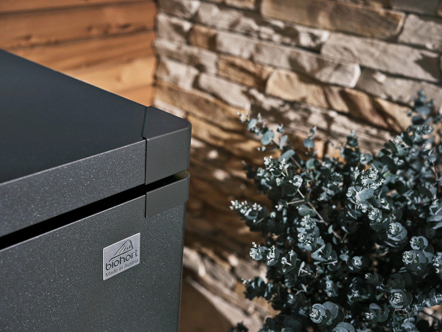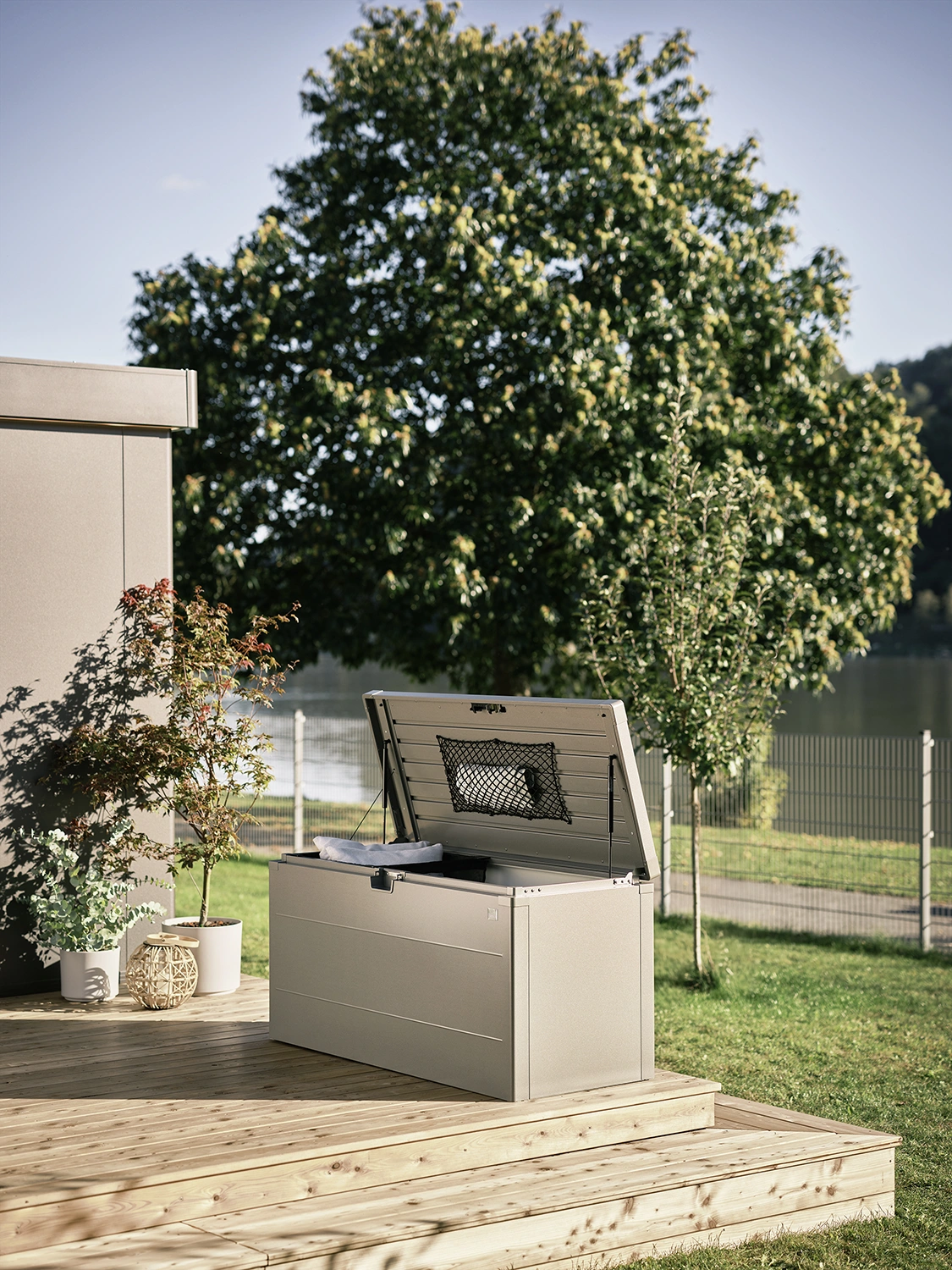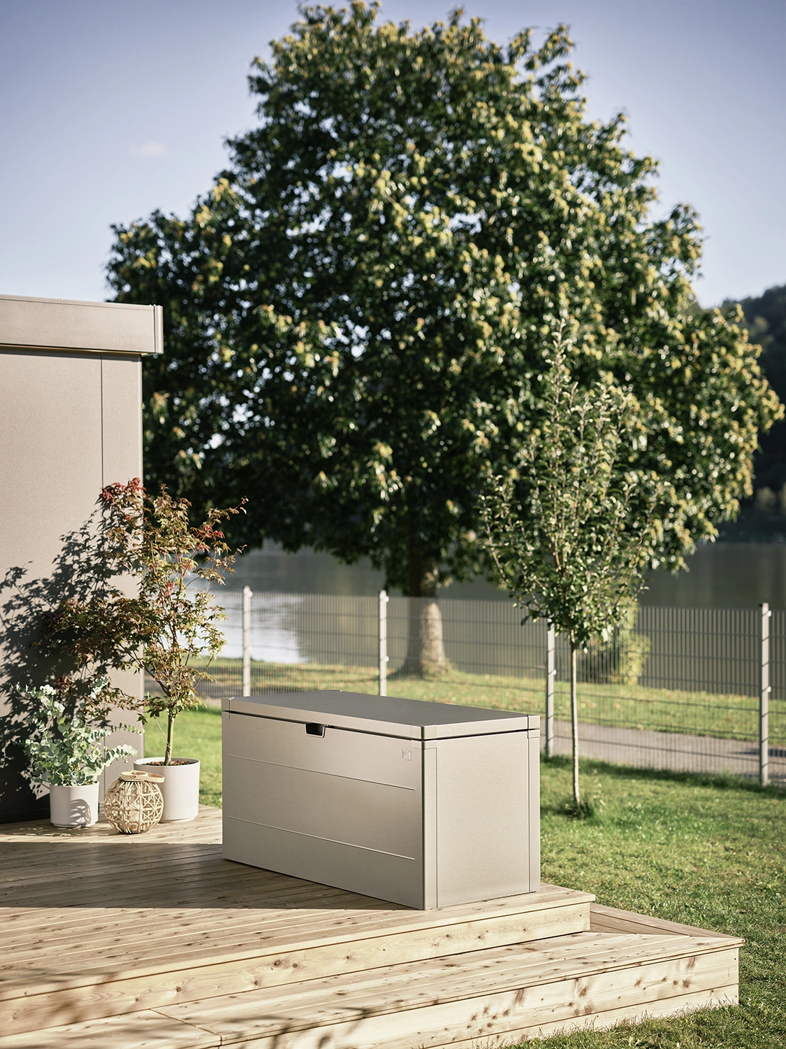Designen kännetecknas av släta ytor och en felfri finish som ger ett elegant intryck. Tack vare det innovativa push-fit-systemet monteras lådan på mindre än 20 minuter. Den passar lika bra på terrassen, balkongen eller i trädgården.